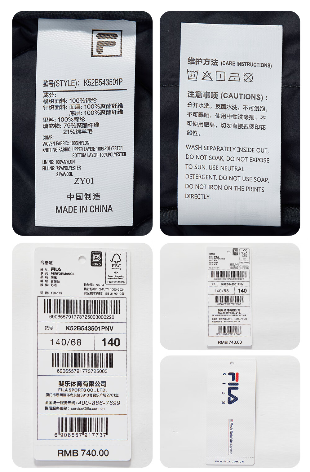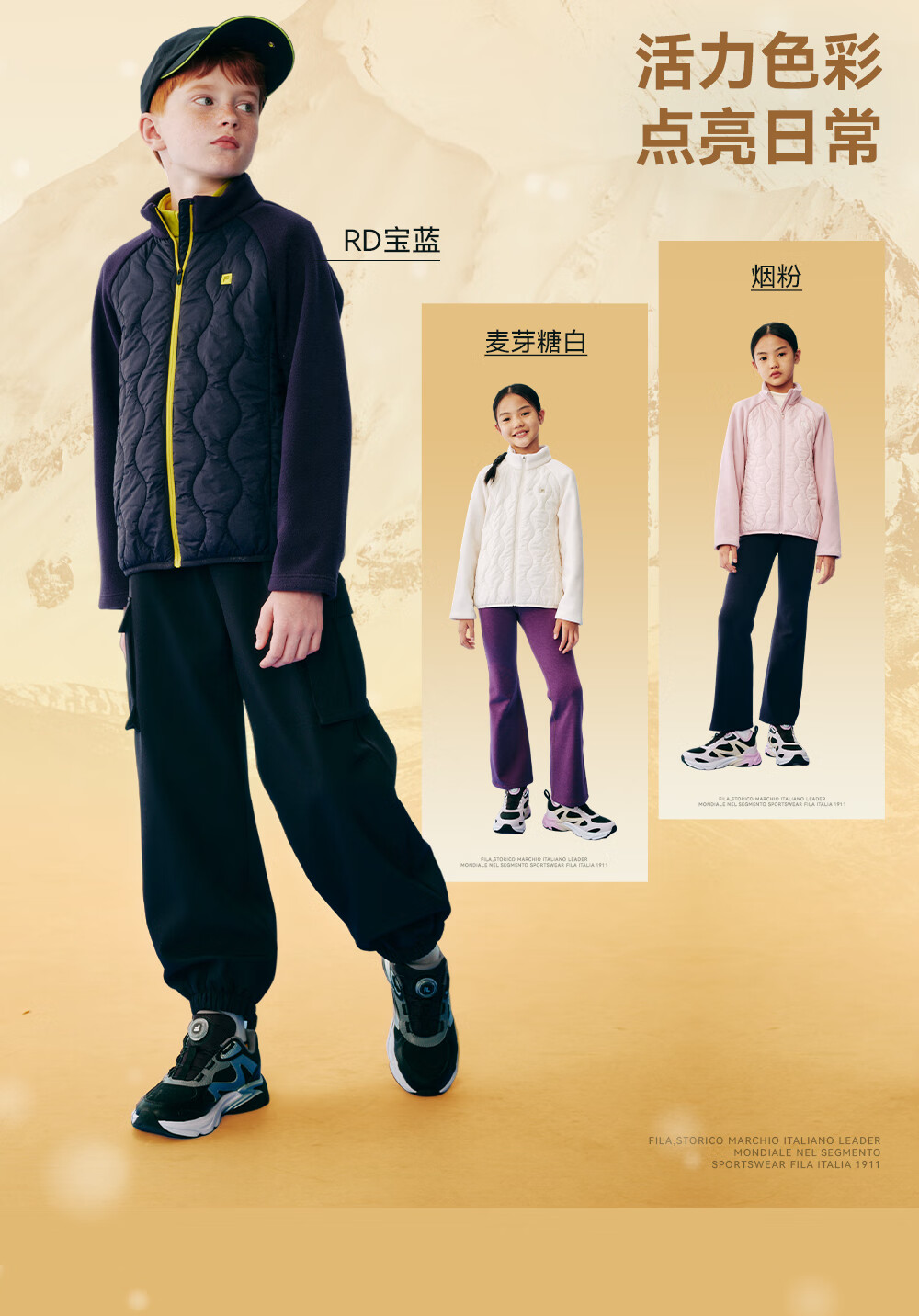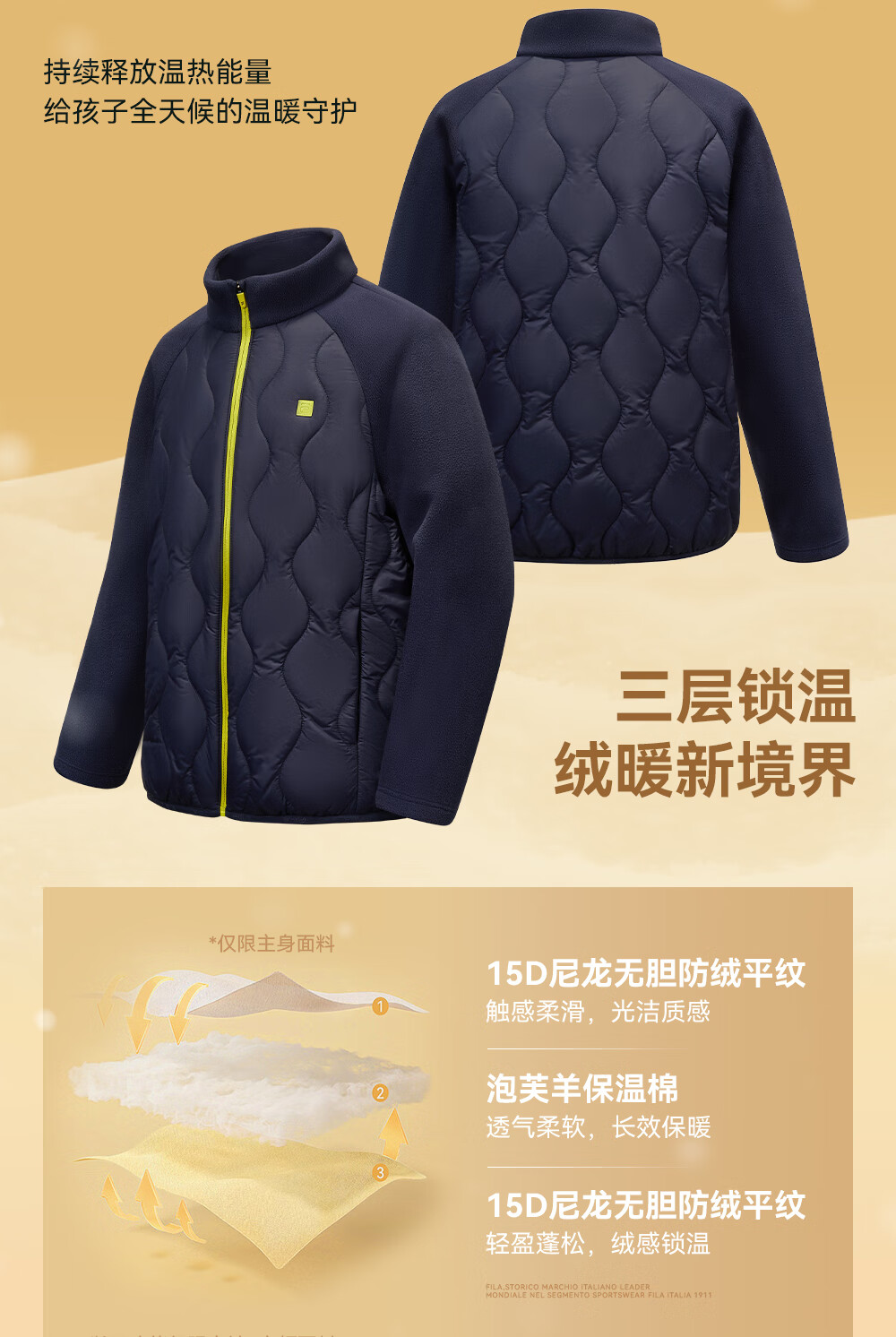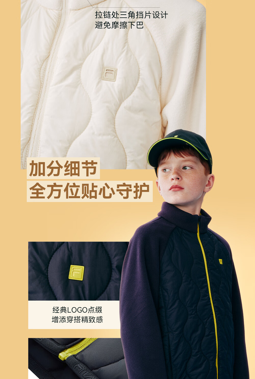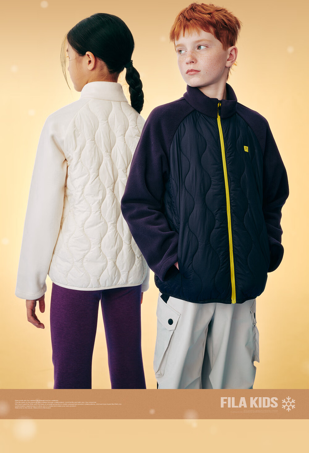 FILA children's cotton clothing 2025 winter new large and small children's sports jackets boys and girls school uniform artifact RD Sapphire-NV 165