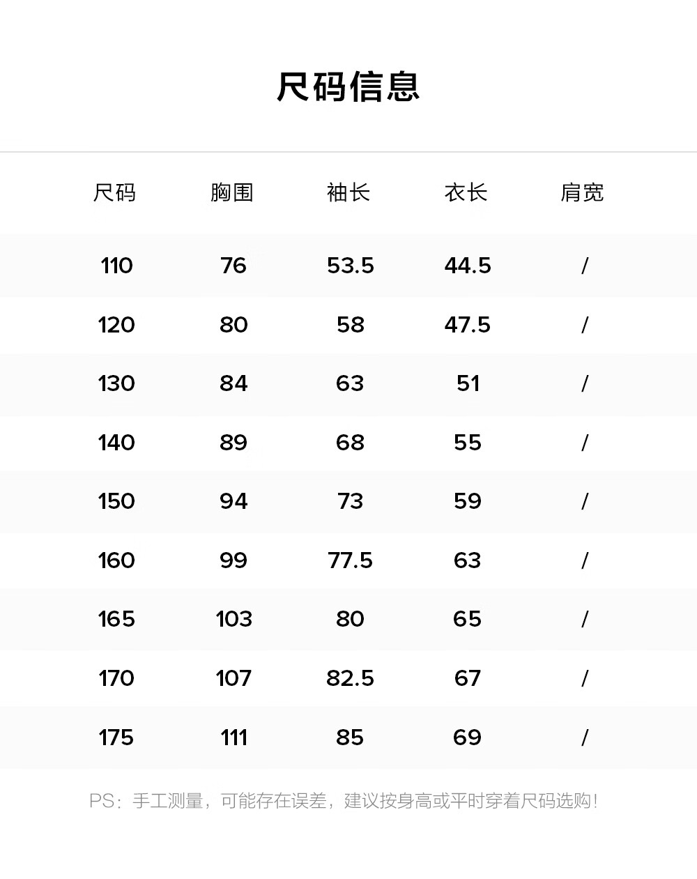 China (cm) 160-165/84-86 165-170 / 88-90 167-172 / 92-96 168-173 / 98-102 170-176 / 106-110