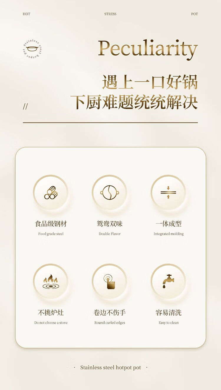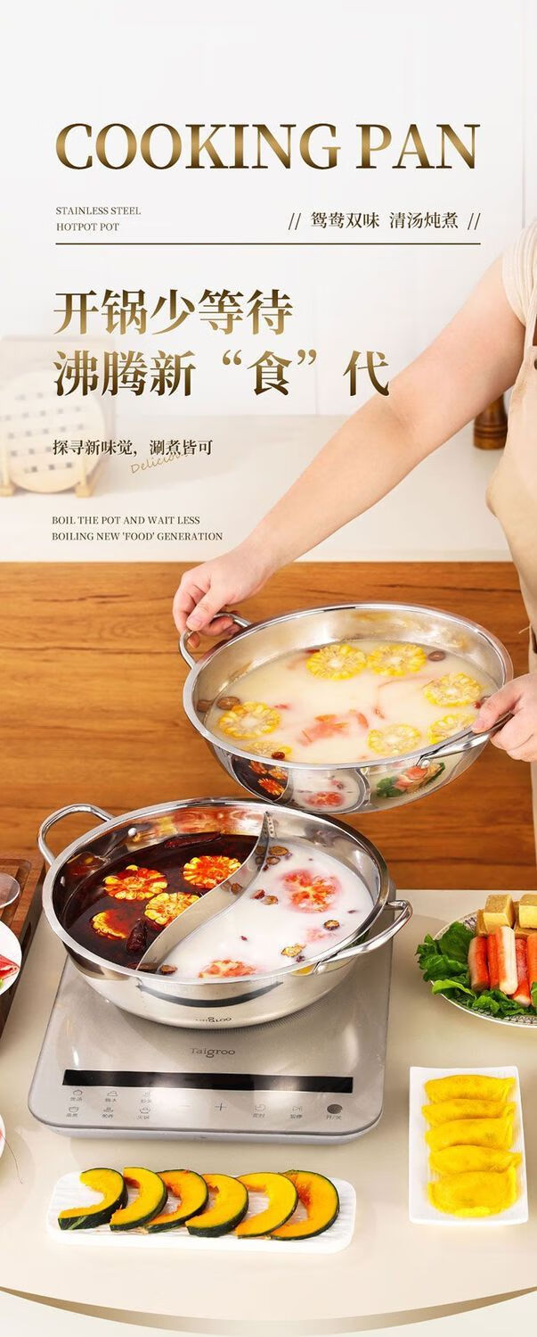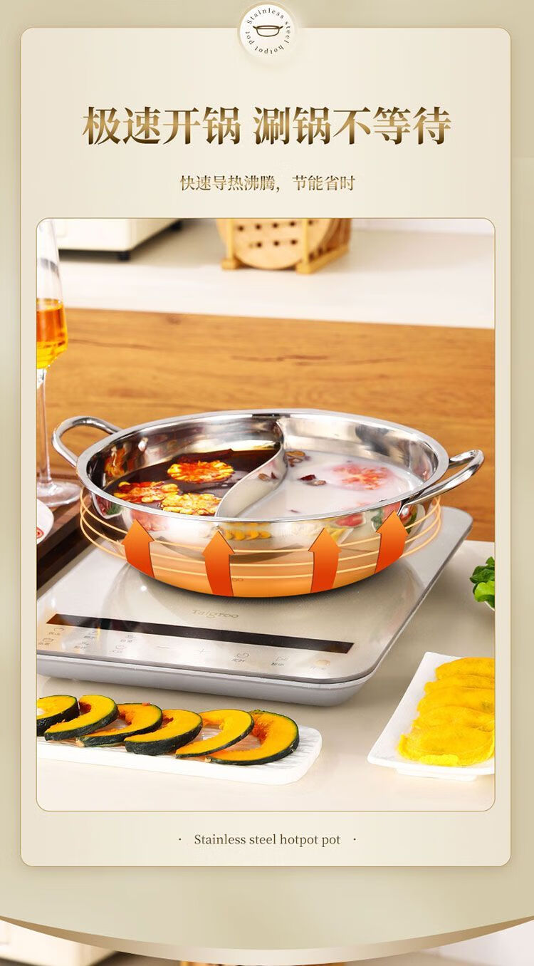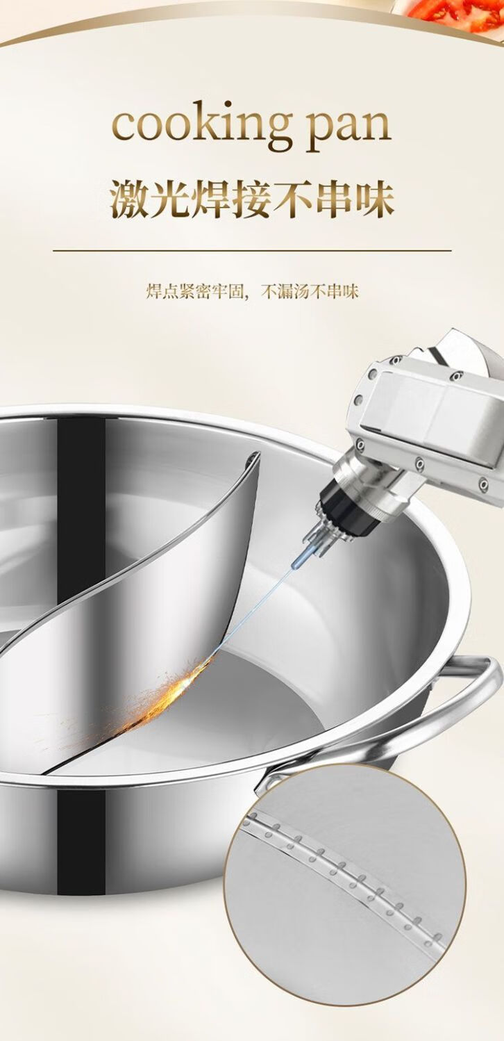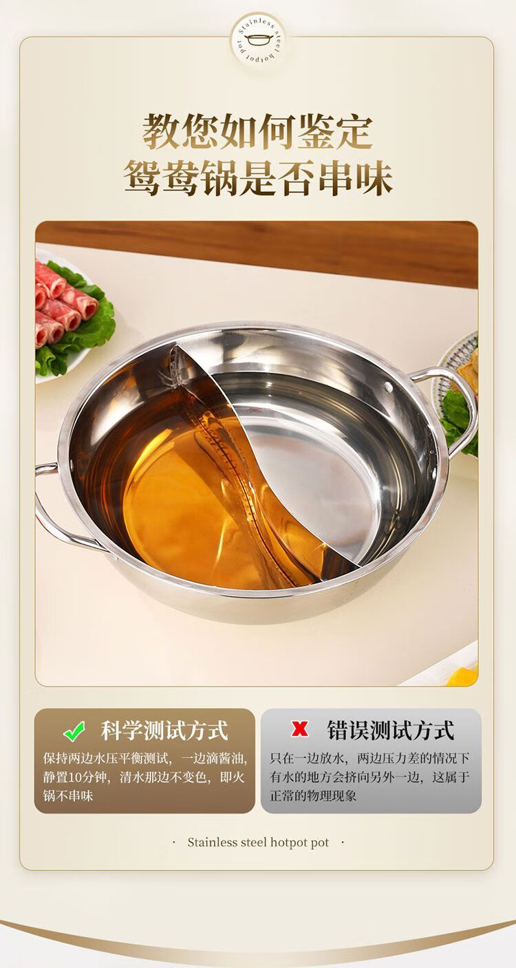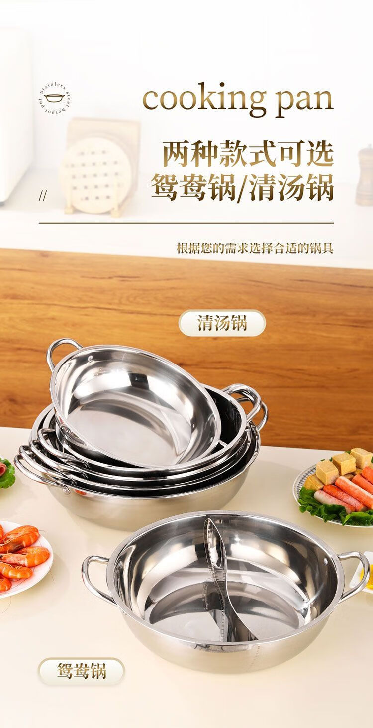 Thickened stainless steel mandarin duck pot double-eared hot pot with lid household flat bottom hot pot pot induction cooker open fire special pot silver 38cm