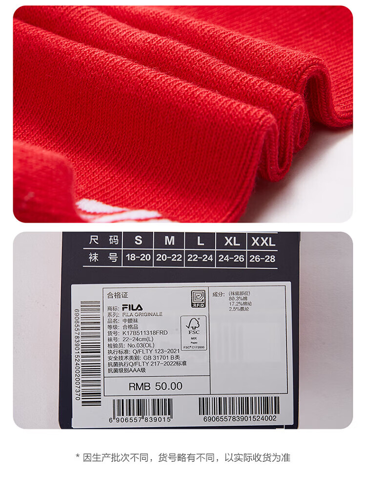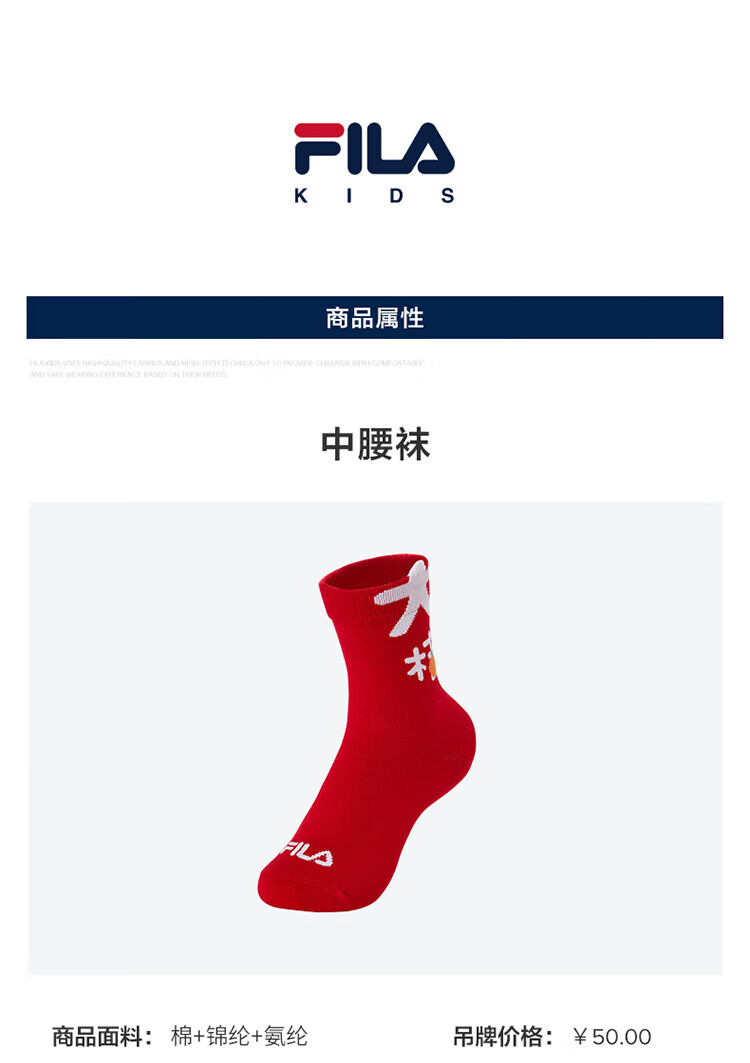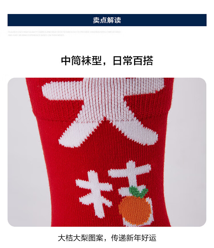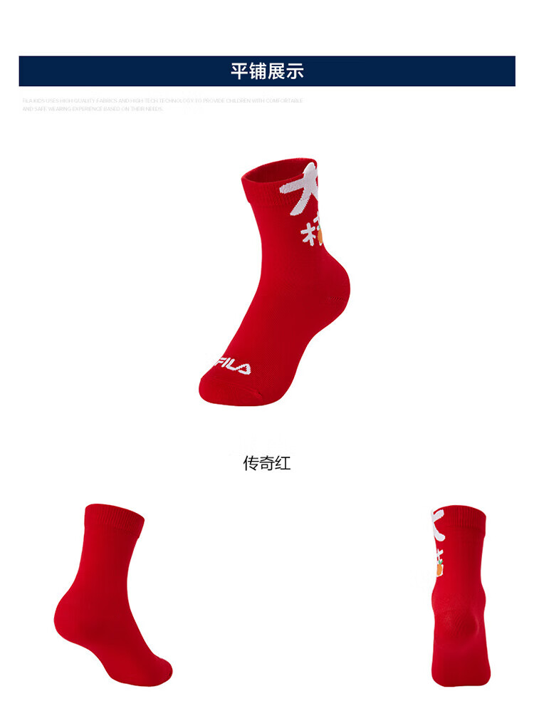 Fila Antibacterial Fila Children's Red Socks 2025 Spring New Children's Mid-waist Socks New Year's Trend Legend Red-RD 1 Pair One Size M