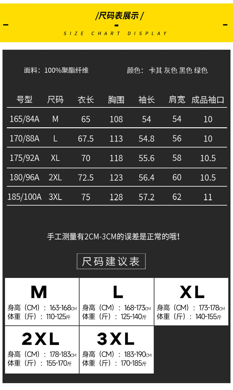 China (cm) 165 / 88-90 170 / 96-98 175 / 108-110 180 / 118-122 185 / 126-130