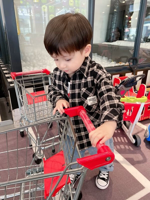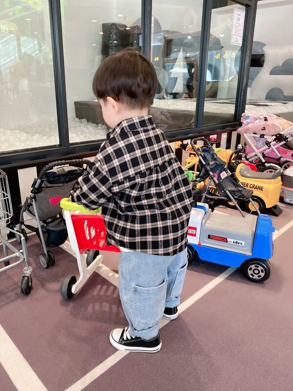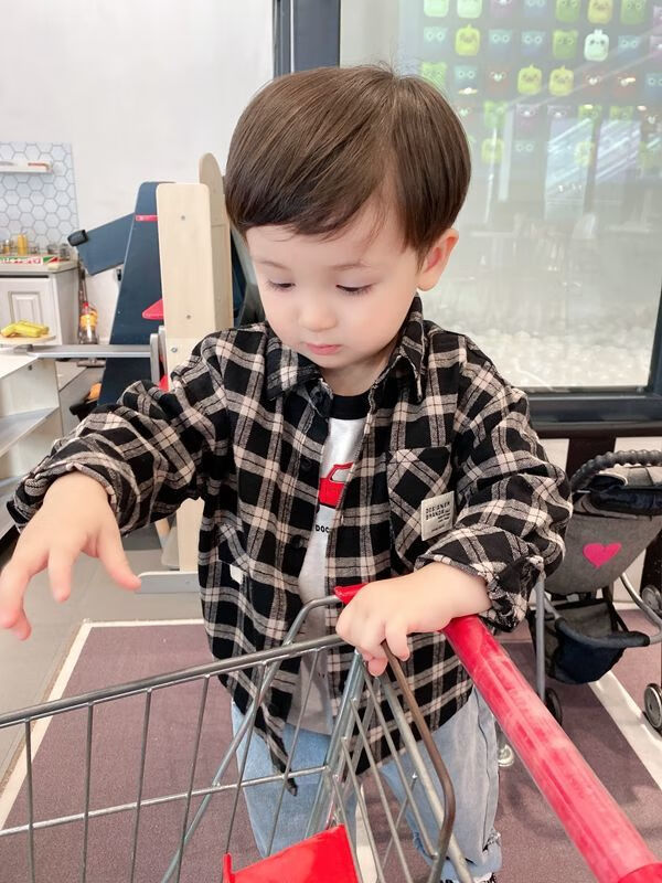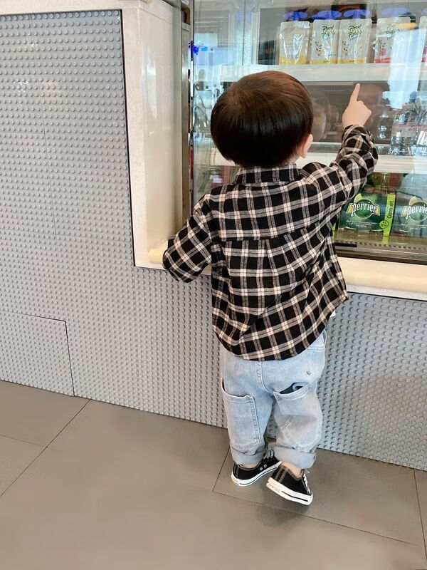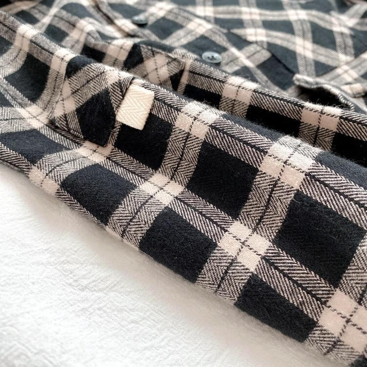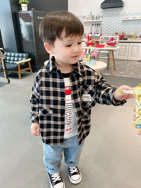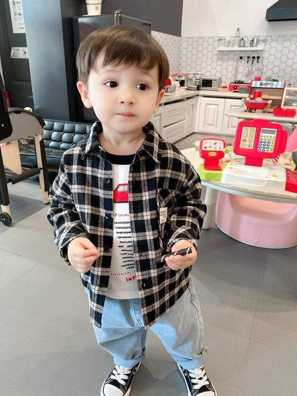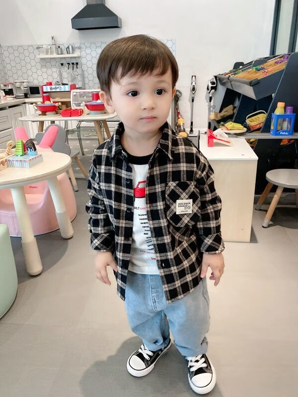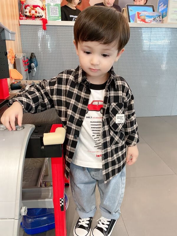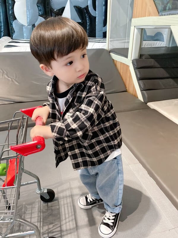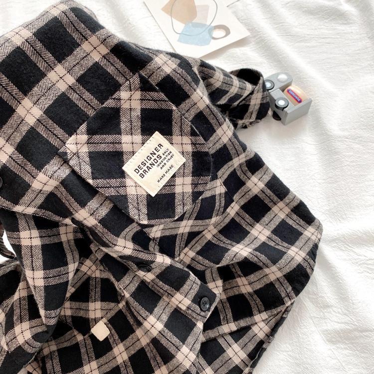 Pisces Rabbit (SHUAGNYUTU) boys' shirt spring and autumn handsome children's shirt long-sleeved baby plaid top Korean style spring style thin coat black plaid spring and autumn 90