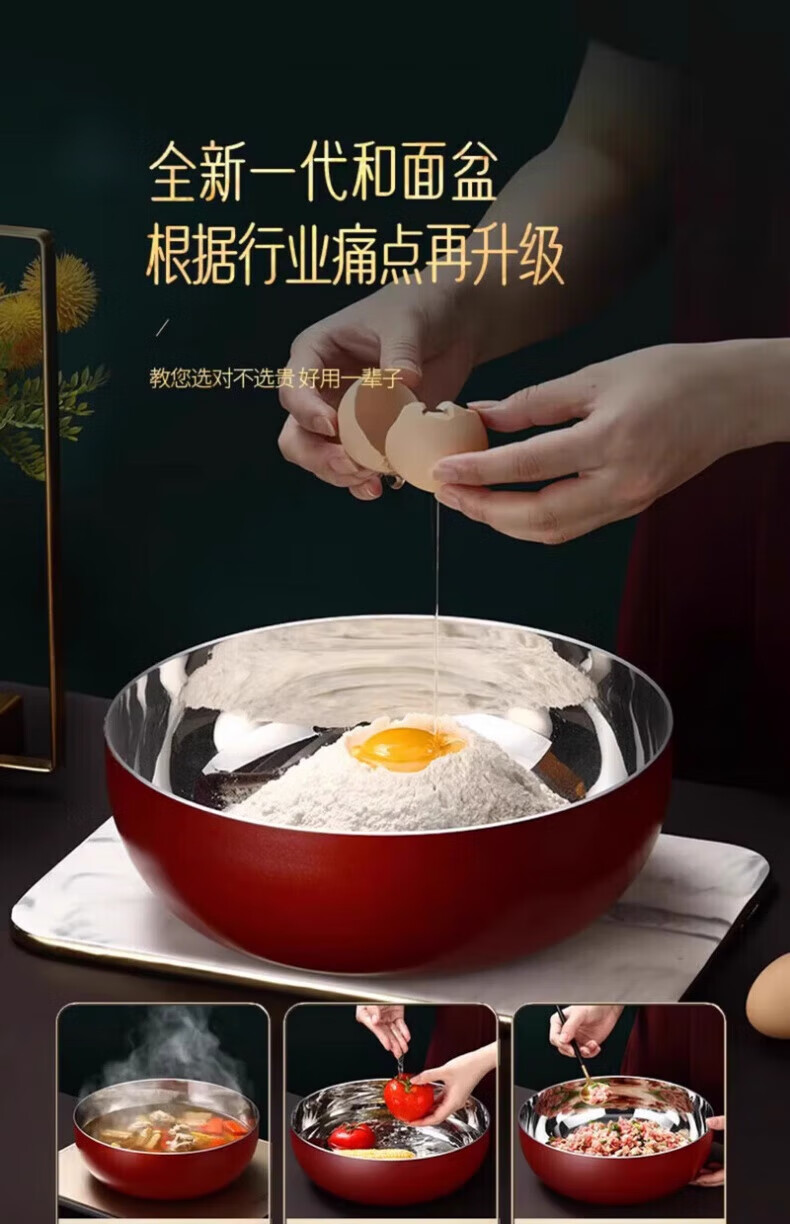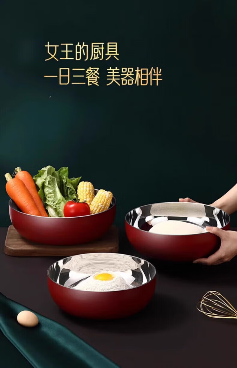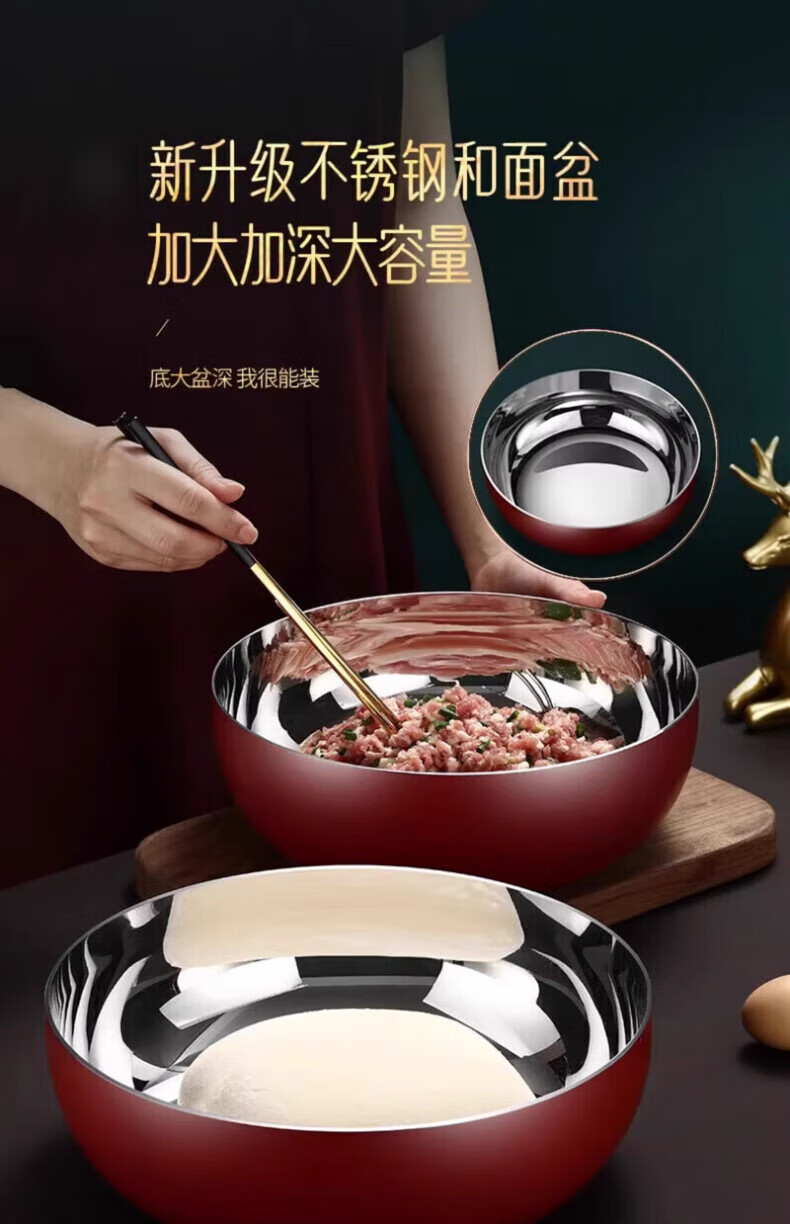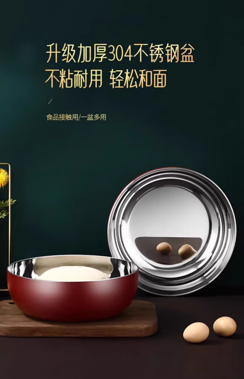 XKJ German stainless steel basin food grade 304 kitchen dish basin and wash basin kneading basin egg beating basin milk bottle washing basin light luxury and basin 24cm