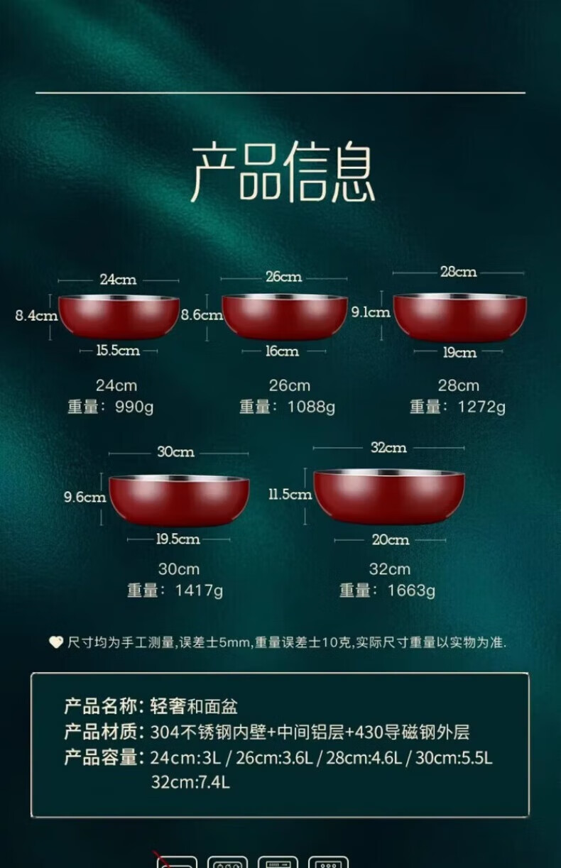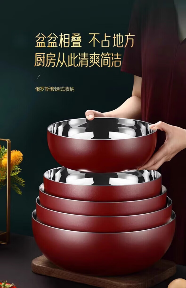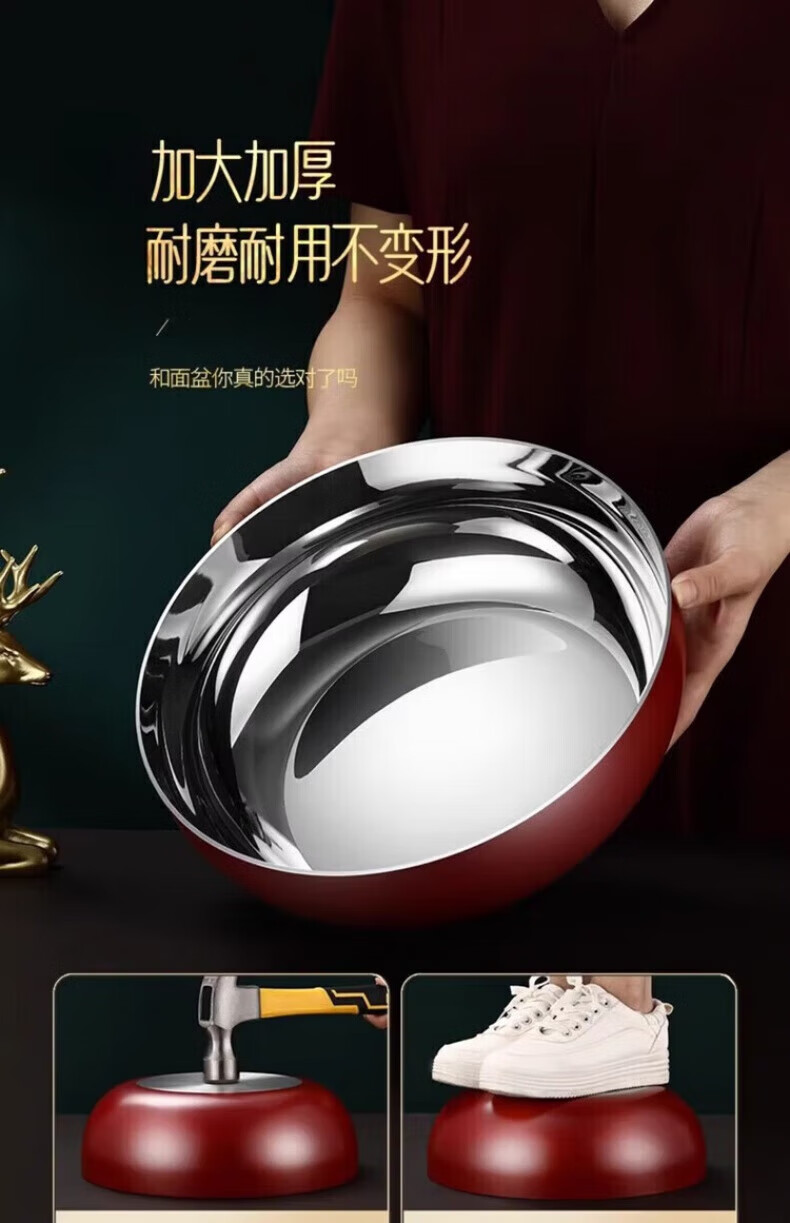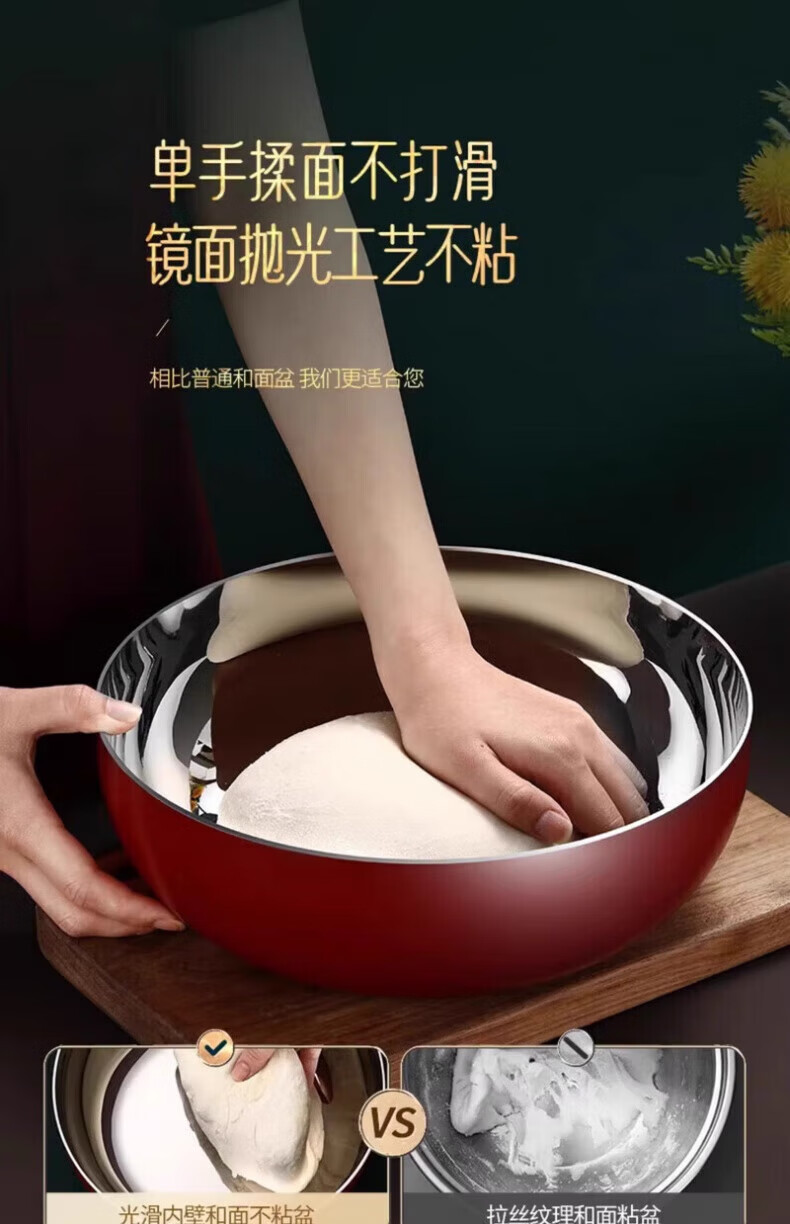 XKJ German stainless steel basin food grade 304 kitchen dish basin and wash basin kneading basin egg beating basin milk bottle washing basin light luxury and basin 24cm