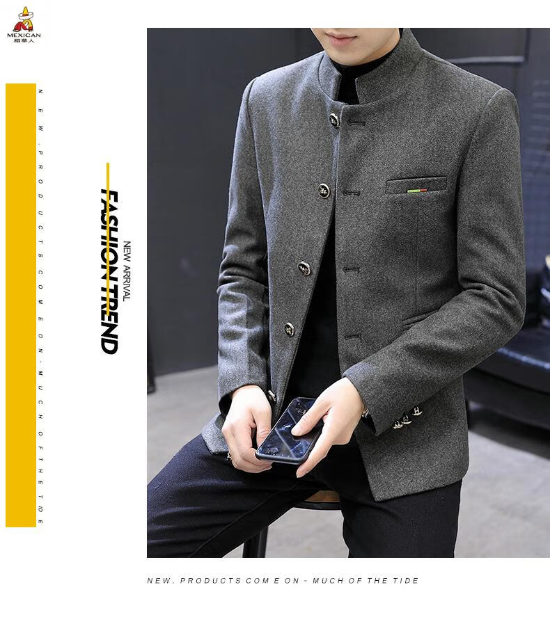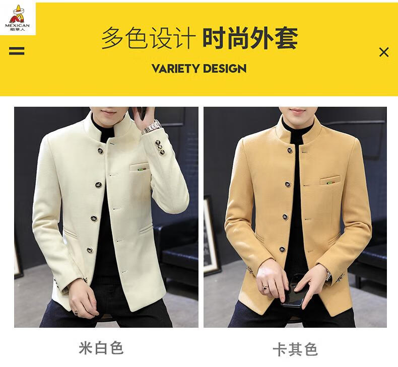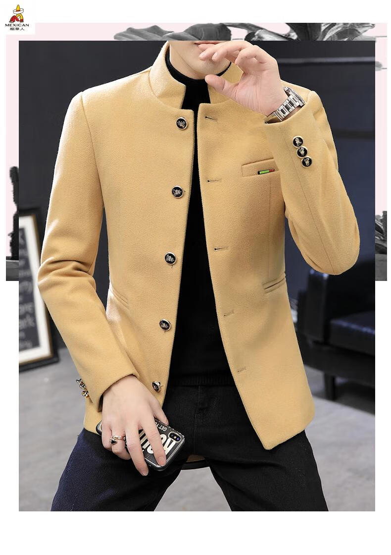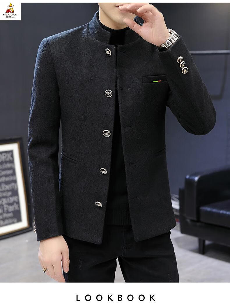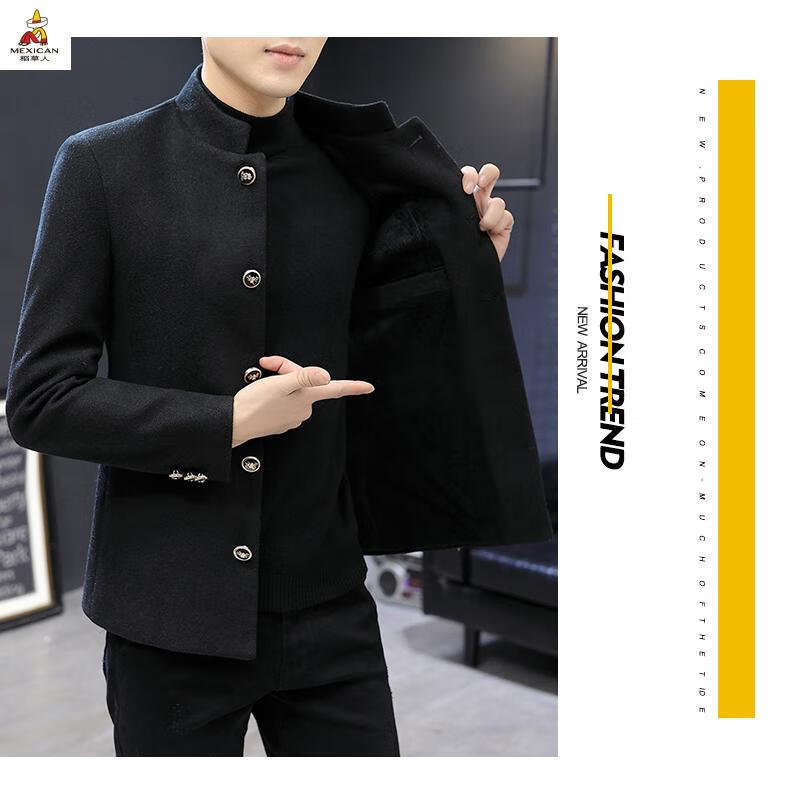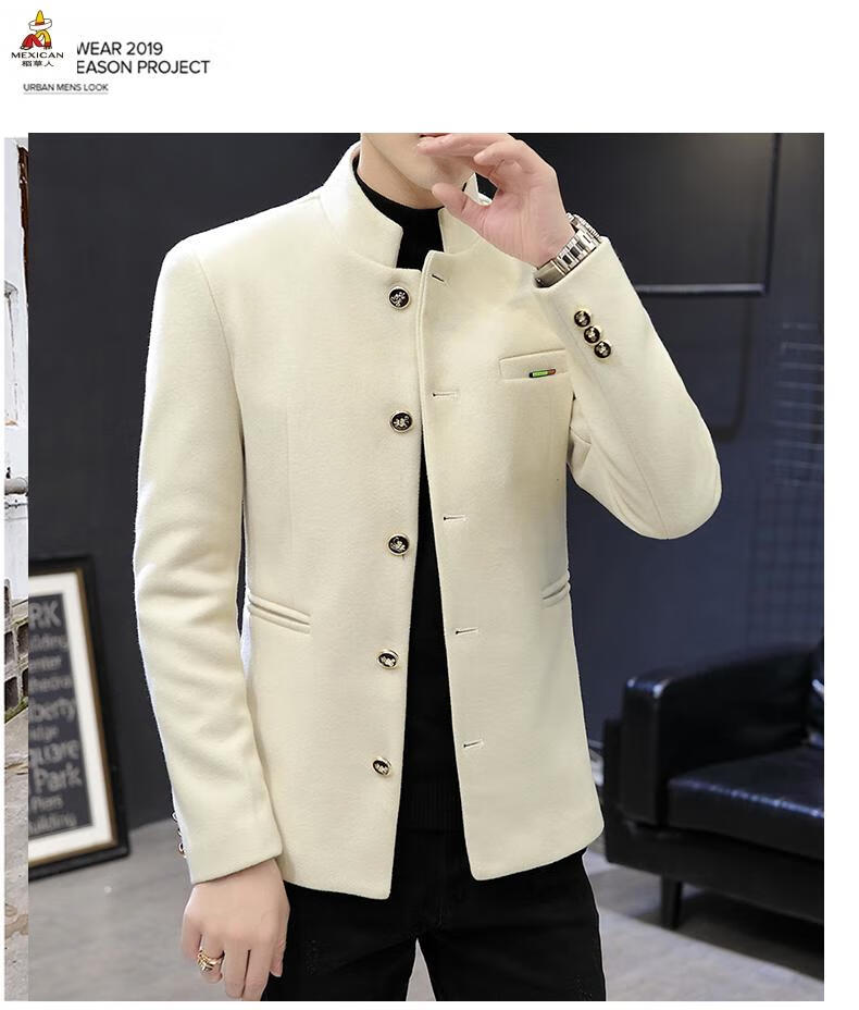 Scarecrow winter velvet suit jacket for men, Korean version, slim, stand-up collar, tunic suit, handsome, thickened and warm, solid color small suit, trendy off-white 2XL