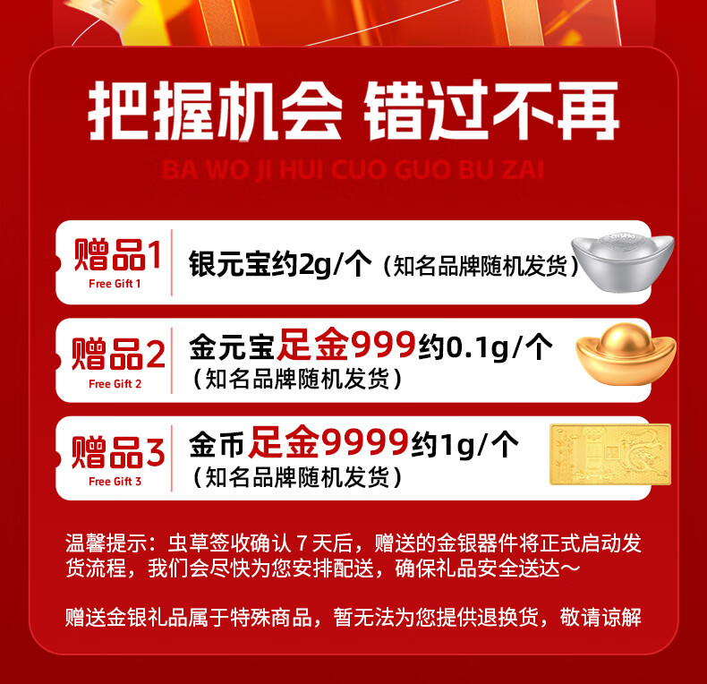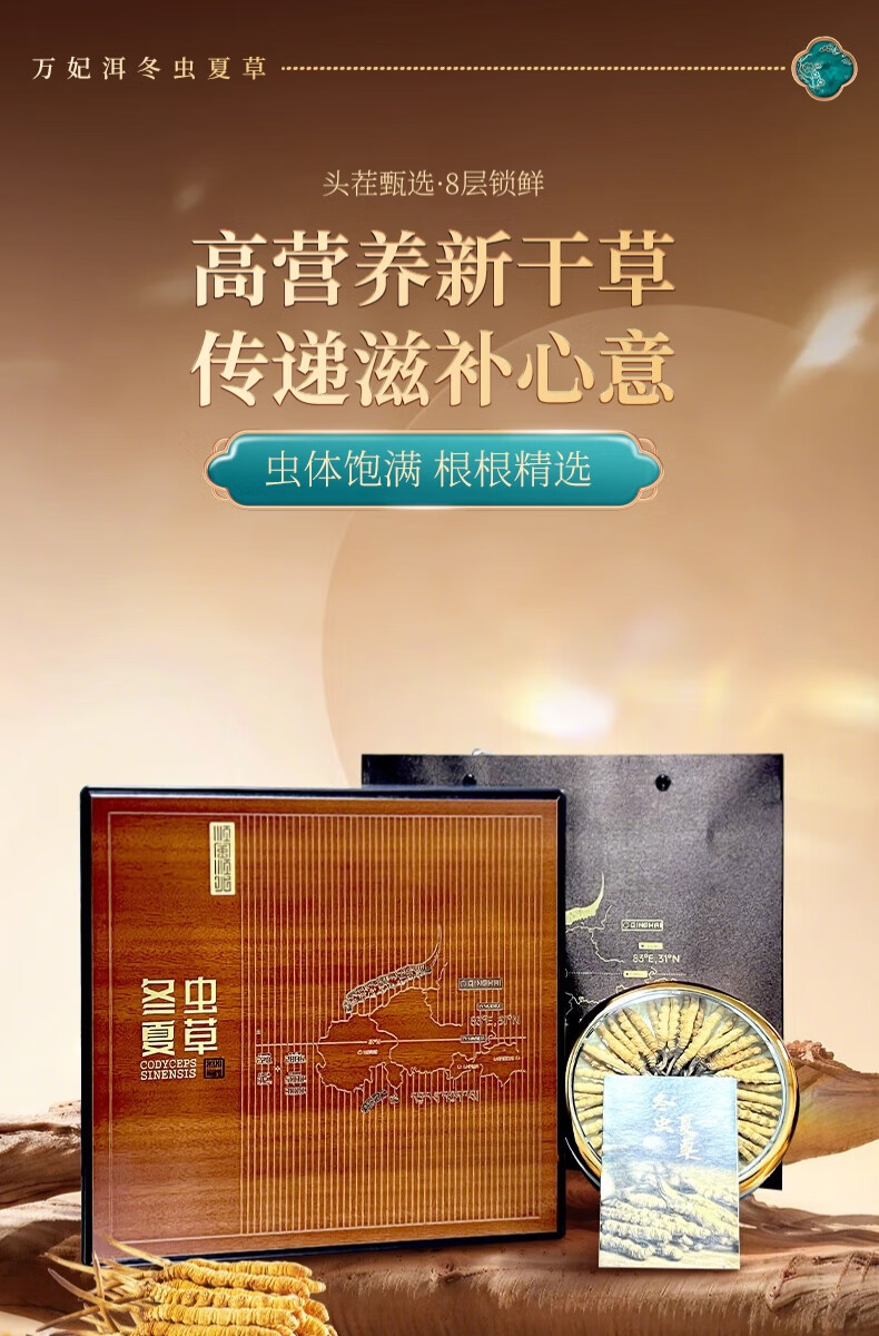 Wanfei'er Cordyceps nourishing high-quality Cordyceps nutritional products gift box gift for leaders and elders Affordable stocking gift box 50 pieces Elegant gift box 3-4 pieces/free 3 pieces 999 pure gold ingot