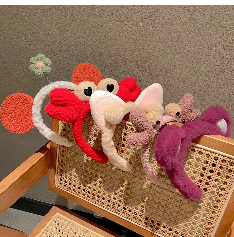 Cartoon face wash special headband for women 2025 new plush headband for hair pressure makeup cute hairpins hairband headwear 2 random main pictures