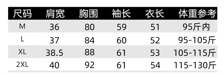 China (cm) 165 / 88-90 170 / 96-98 175 / 108-110 180 / 118-122 185 / 126-130