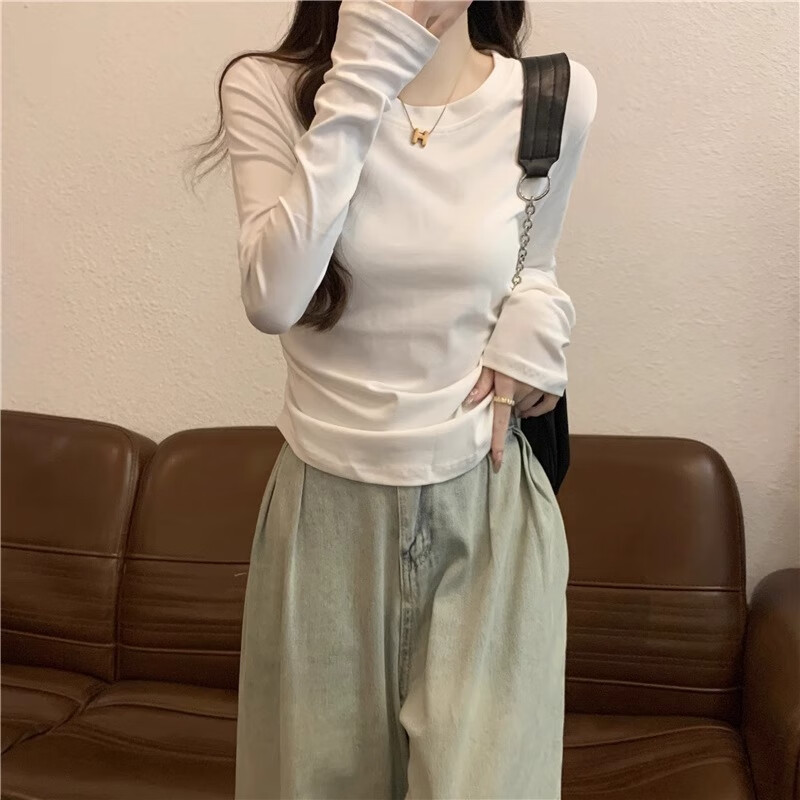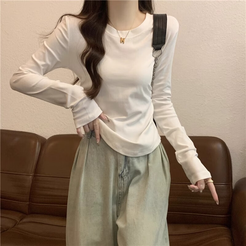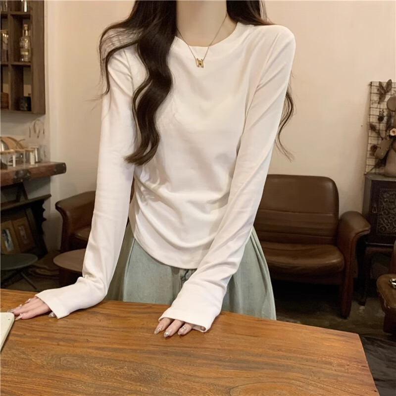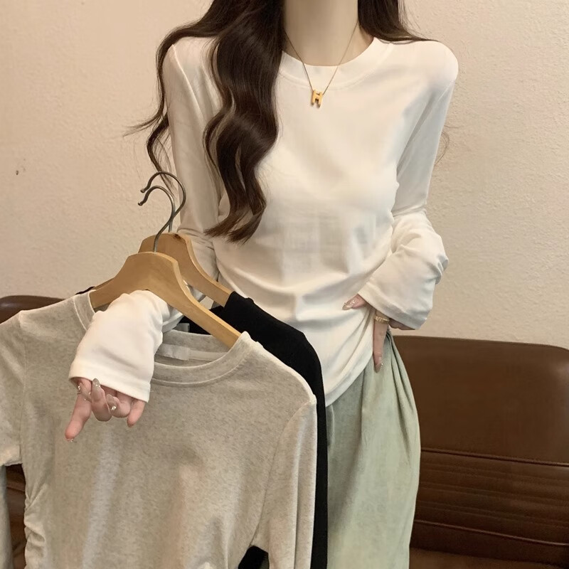 Gray waisted round neck bottoming shirt for women, new autumn and winter slim-fitting long-sleeved T-shirt for women, versatile top layering YRL K705# white gray (solid color) L 95-105Jin Jin is equal to 0.5 kg