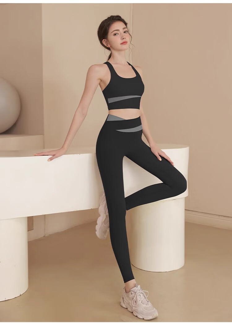 Yoga clothing suit for women, high-end professional sports and fitness suit, women's bra, quick-drying Pilates underwear vest, summer cardamom green bra + sea rock gray trousers XL