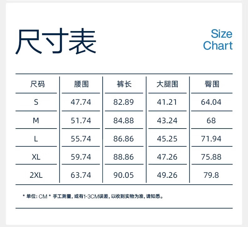 Outseam (cm) 99 cm 101.5 cm 104 cm 106.5 cm 109 cm