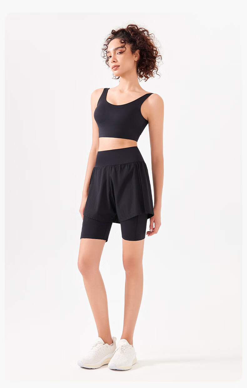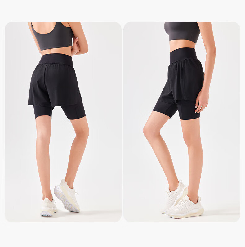 Sports Shorts Women's Summer Thin Quick-Drying Running High Waist Hip Lifting Fake Two-piece Three-piece Pants Yoga Pants Fitness Pants Black L Recommended 110-130Jin Jin equals 0.5kg