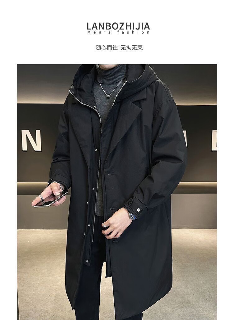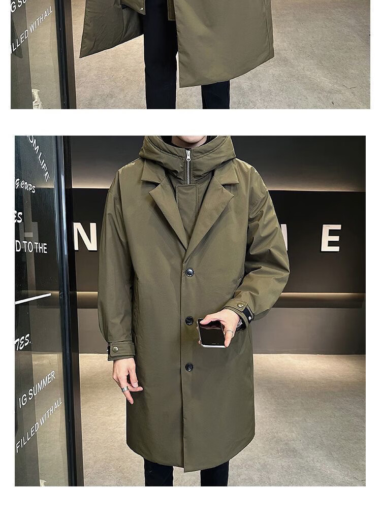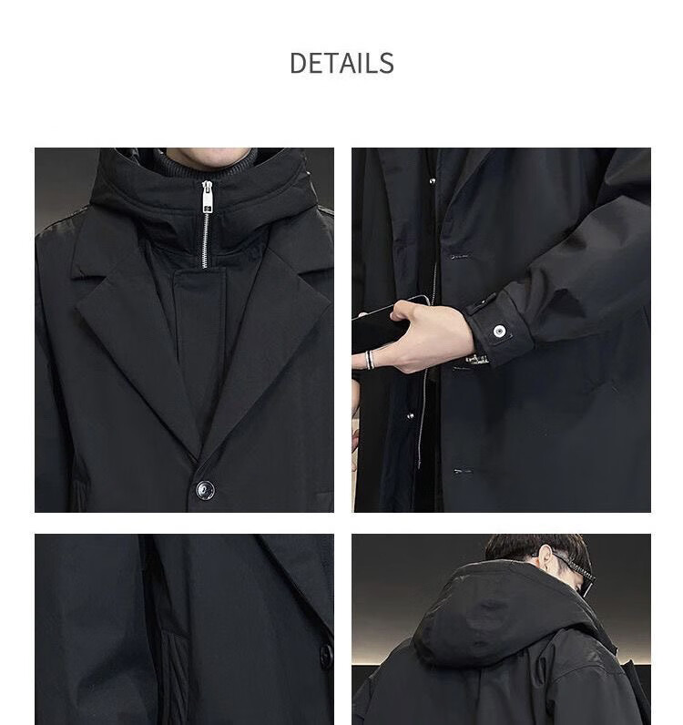 Woodpecker (TUCANO) men's windbreaker hooded mid-length fake two-piece winter new handsome cotton coat outdoor waterproof large size thickened jacket classic black quilted warm collection add-on purchase priority delivery L