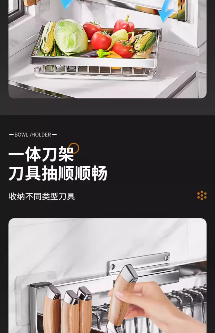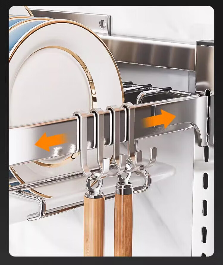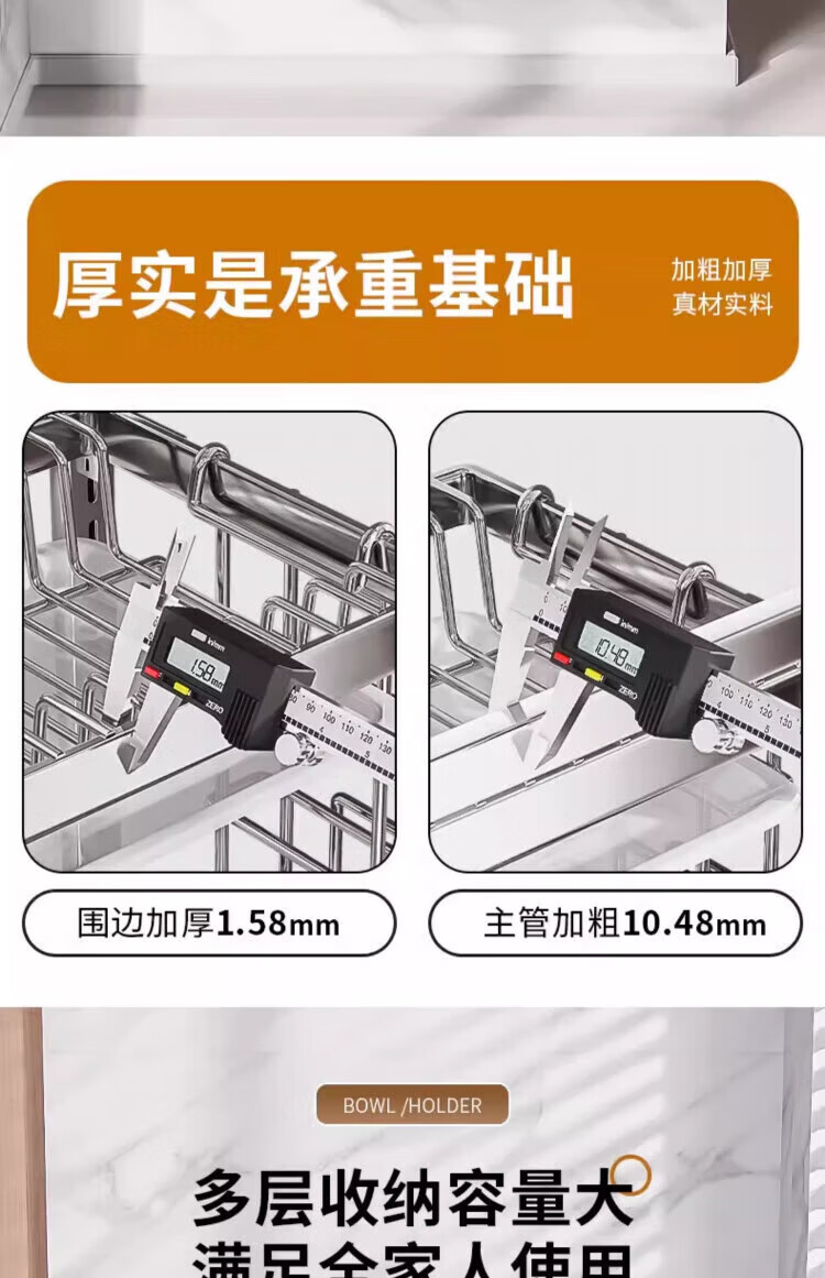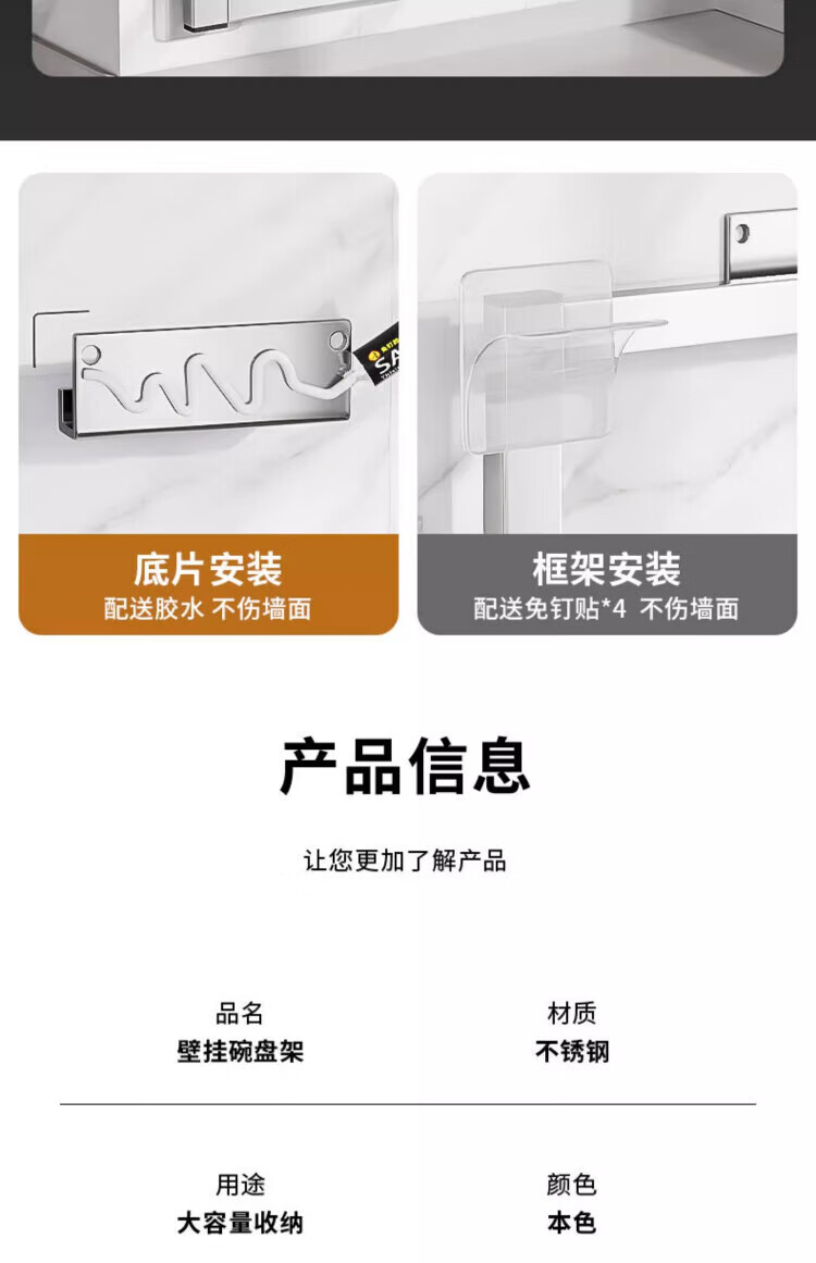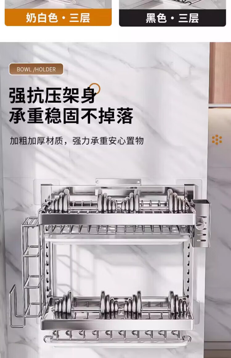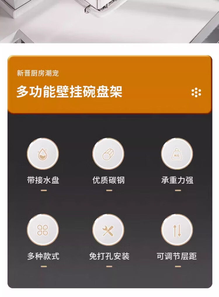 JCZS German brand stainless steel dish storage rack kitchen storage rack wall-mounted punch-free dish rack bowl chopsticks bowl plate drain black carbon steel 36cm double layer standard with drain tray