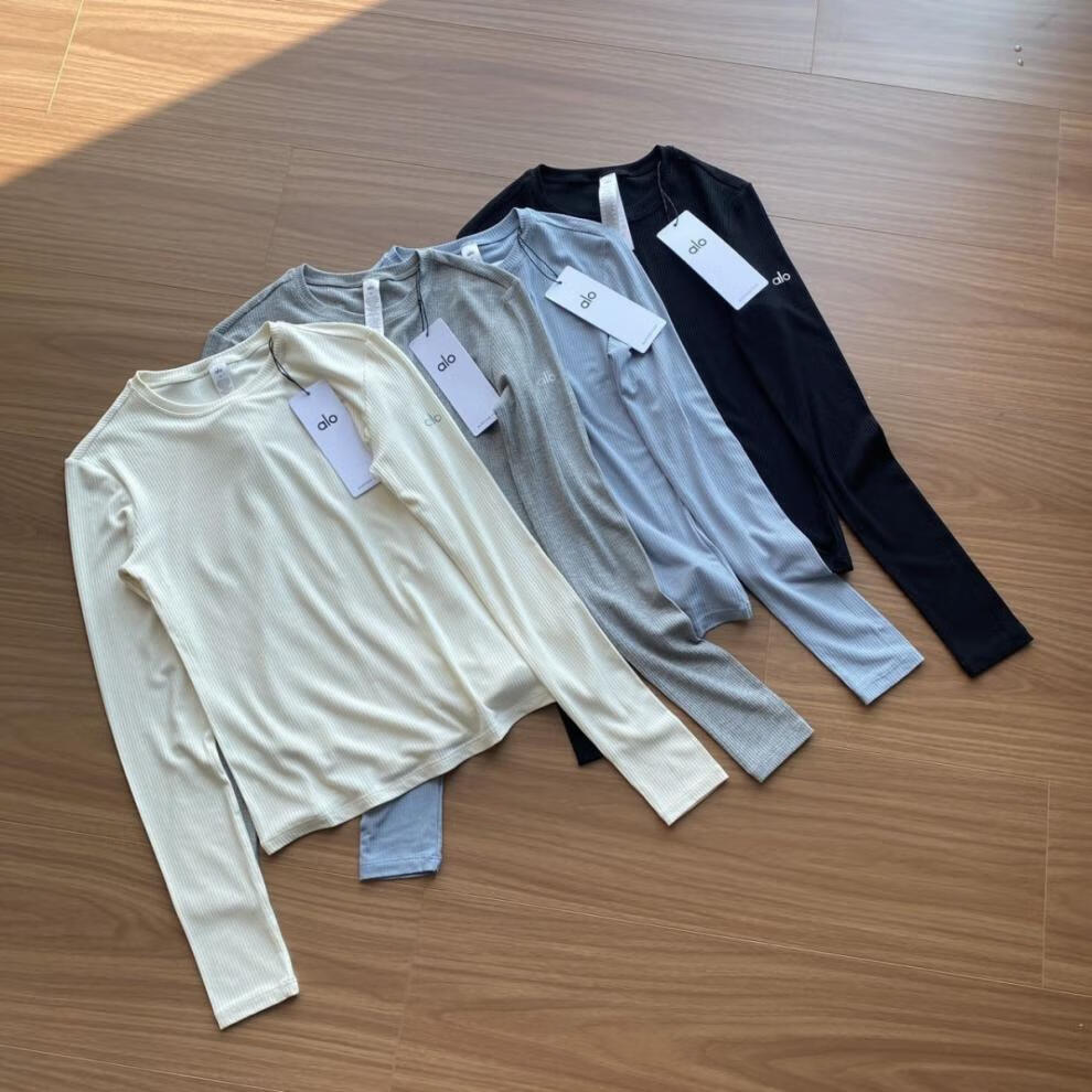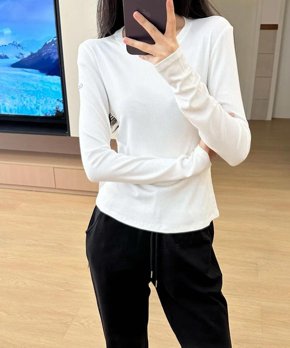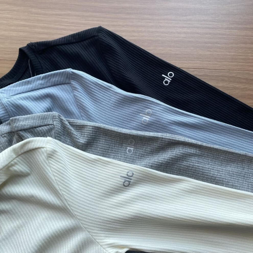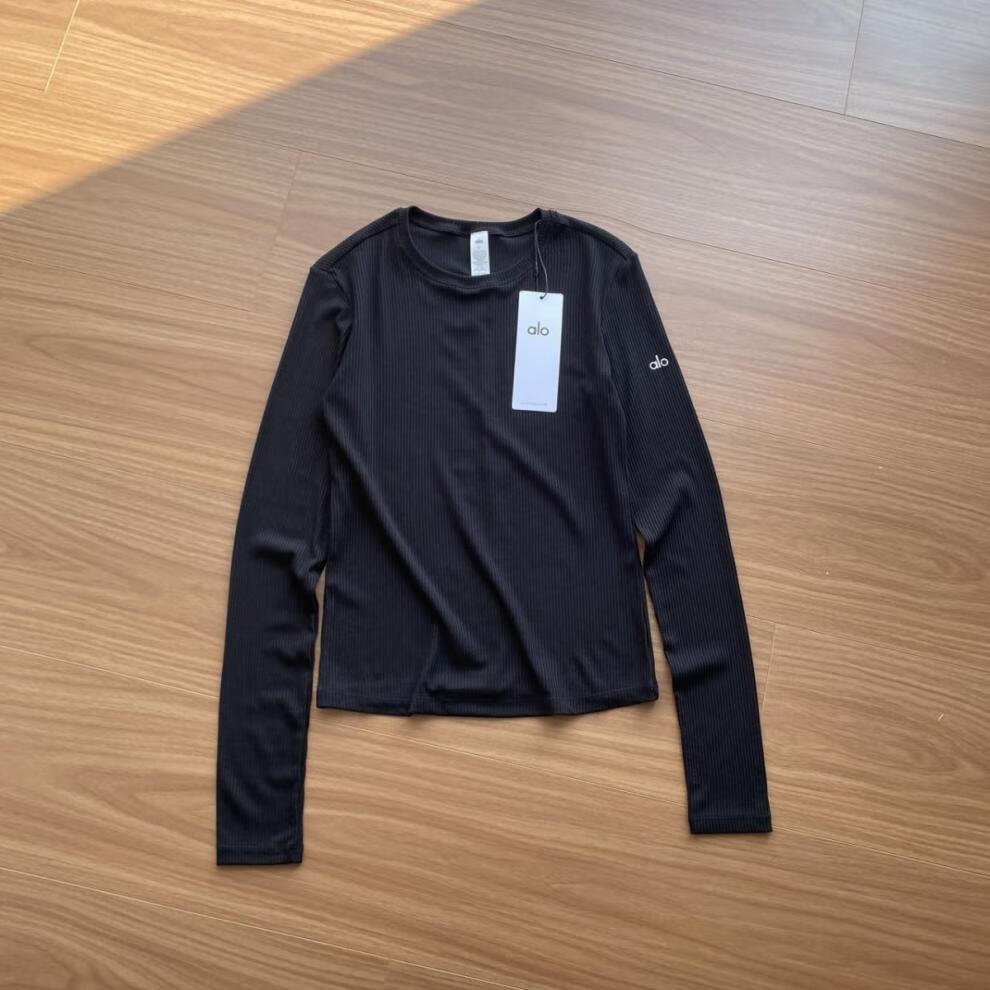 ALO YOGA Yoga Pilates long-sleeved pure cotton ribbed knitted bottoming shirt slim sports fitness running inner top T-shirt black M