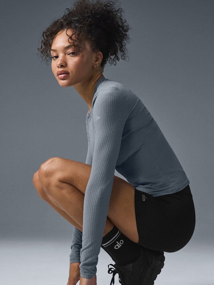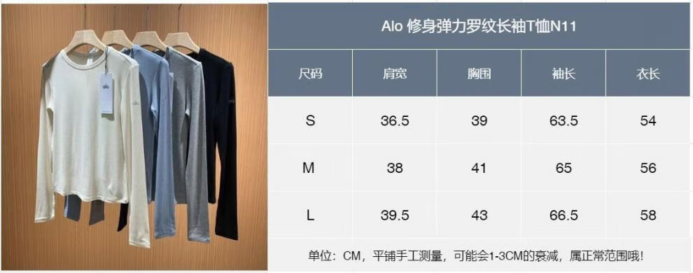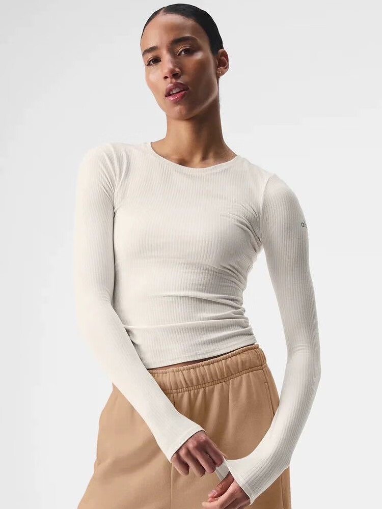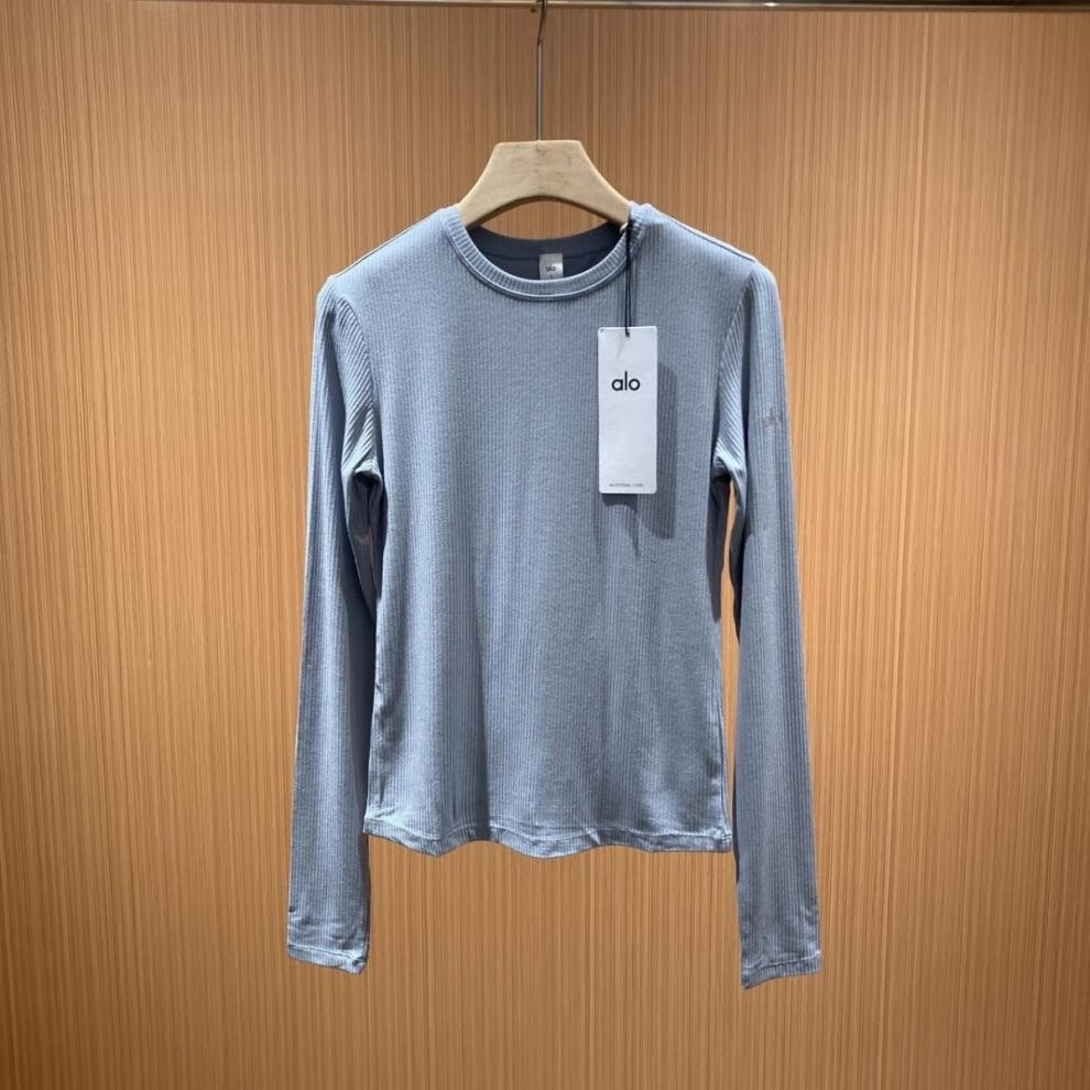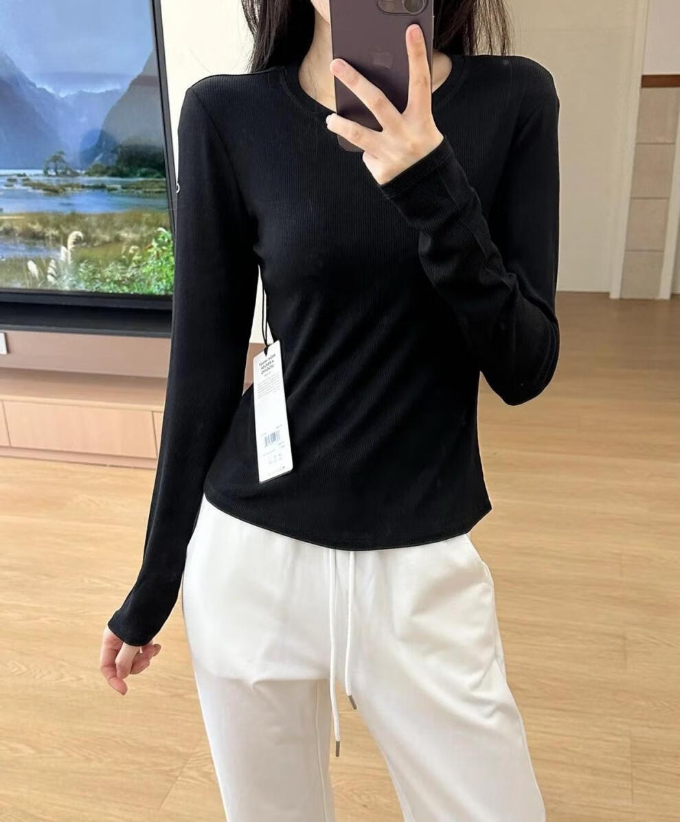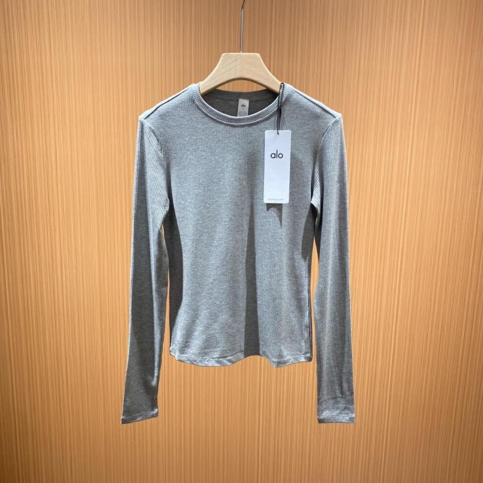 ALO YOGA Yoga Pilates long-sleeved pure cotton ribbed knitted bottoming shirt slim sports fitness running inner top T-shirt black M