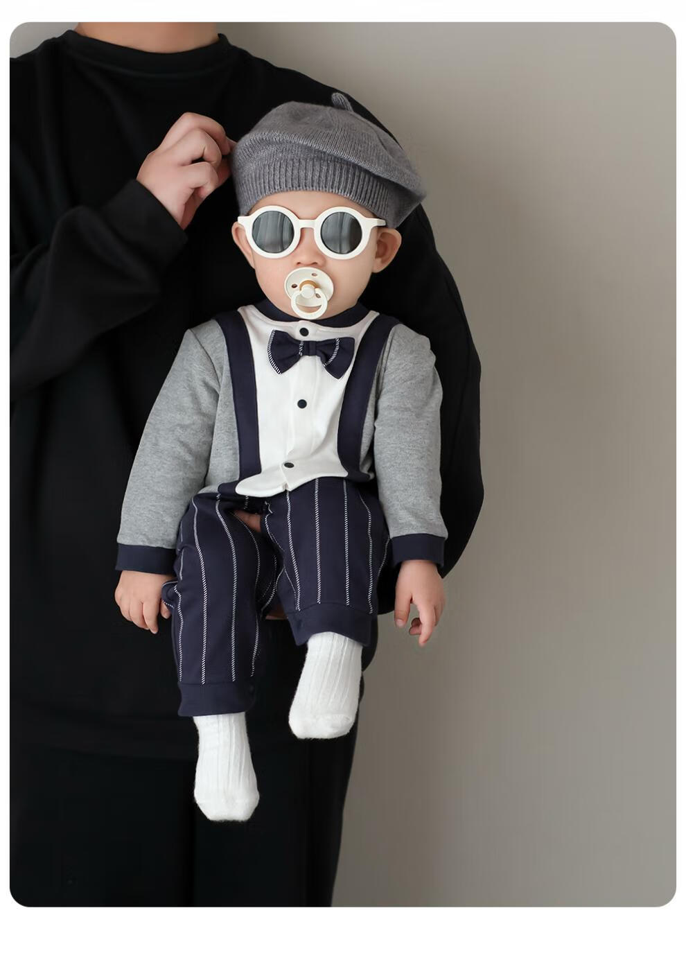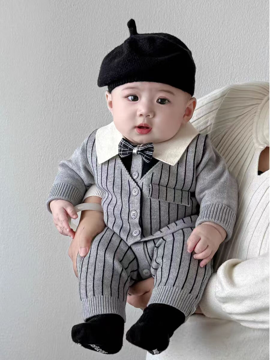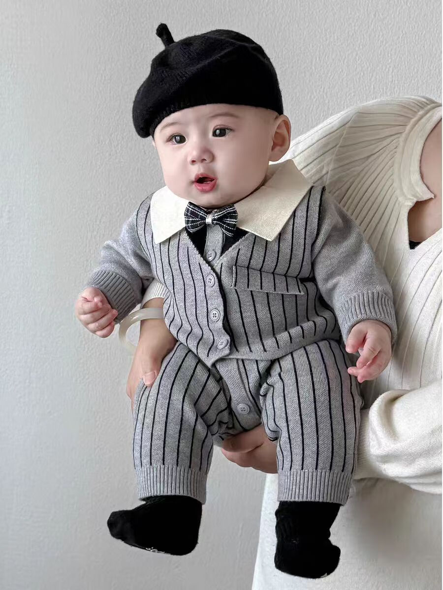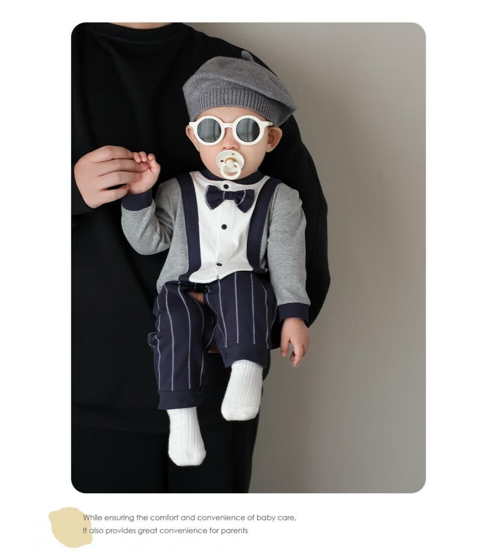 G.duck baby boy one-year-old dress autumn new infant long-sleeved jumpsuit autumn full month baby clothes for a hundred days outing blue tie romper 59cm (recommended 12Jin Jin equals 0.5kg)