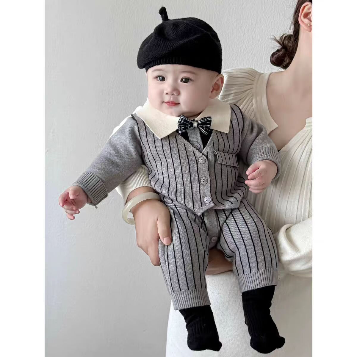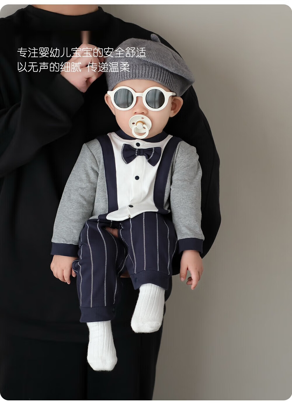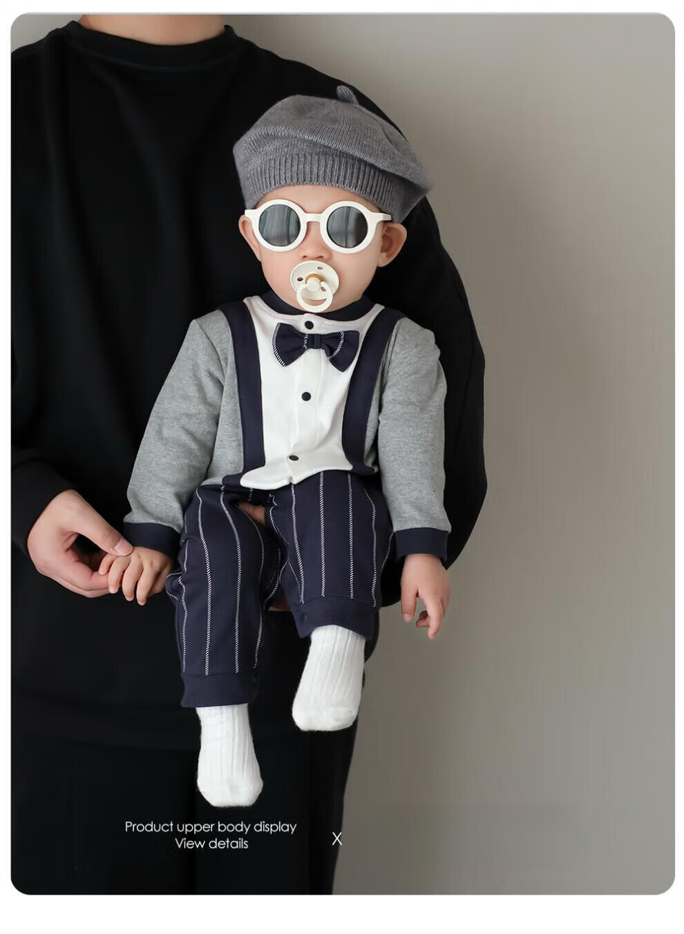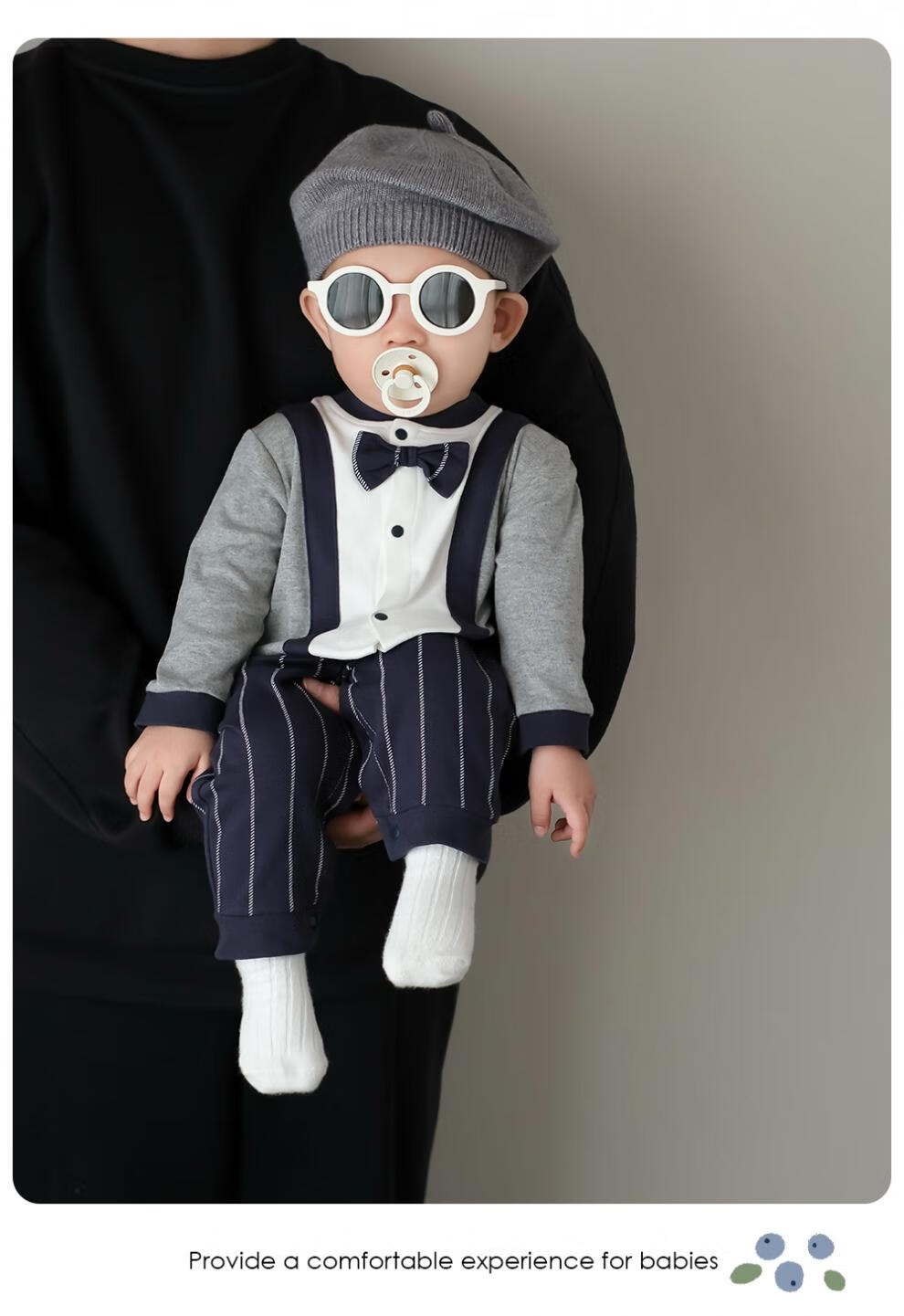 G.duck baby boy one-year-old dress autumn new infant long-sleeved jumpsuit autumn full month baby clothes for a hundred days outing blue tie romper 59cm (recommended 12Jin Jin equals 0.5kg)