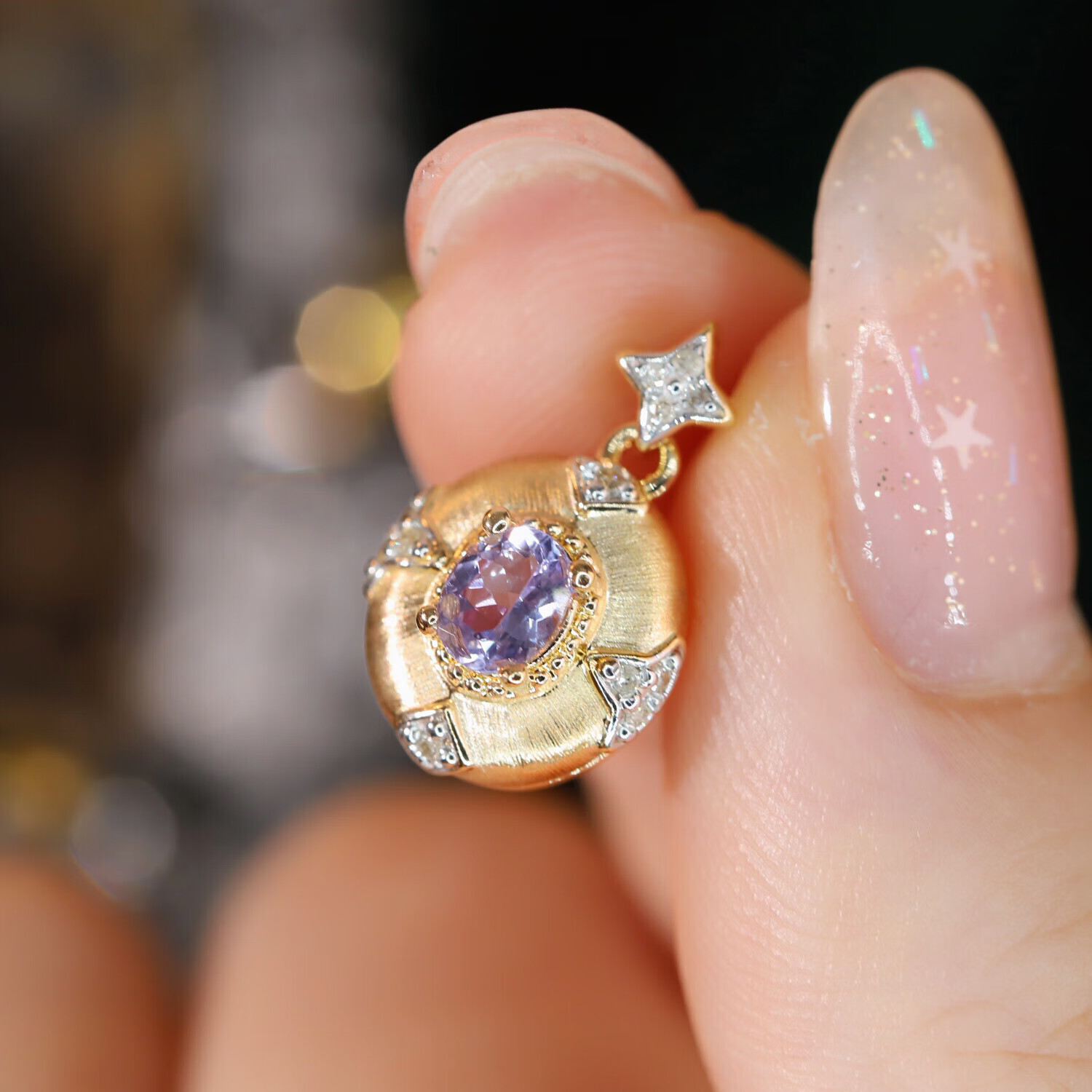 18K Gold Natural Tanzanite Pendant Natural Diamond Inlaid Exquisite Daily Tanzania Does Not Include Chain