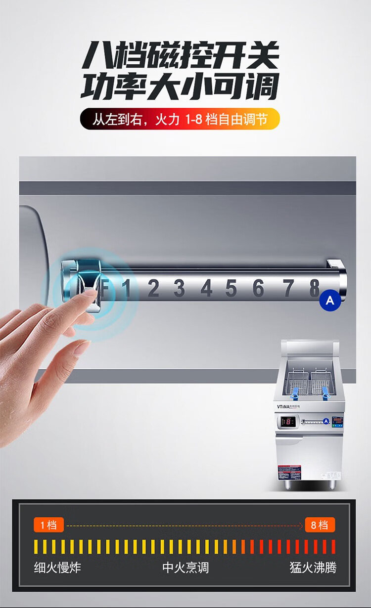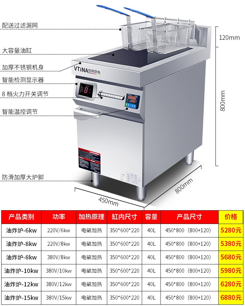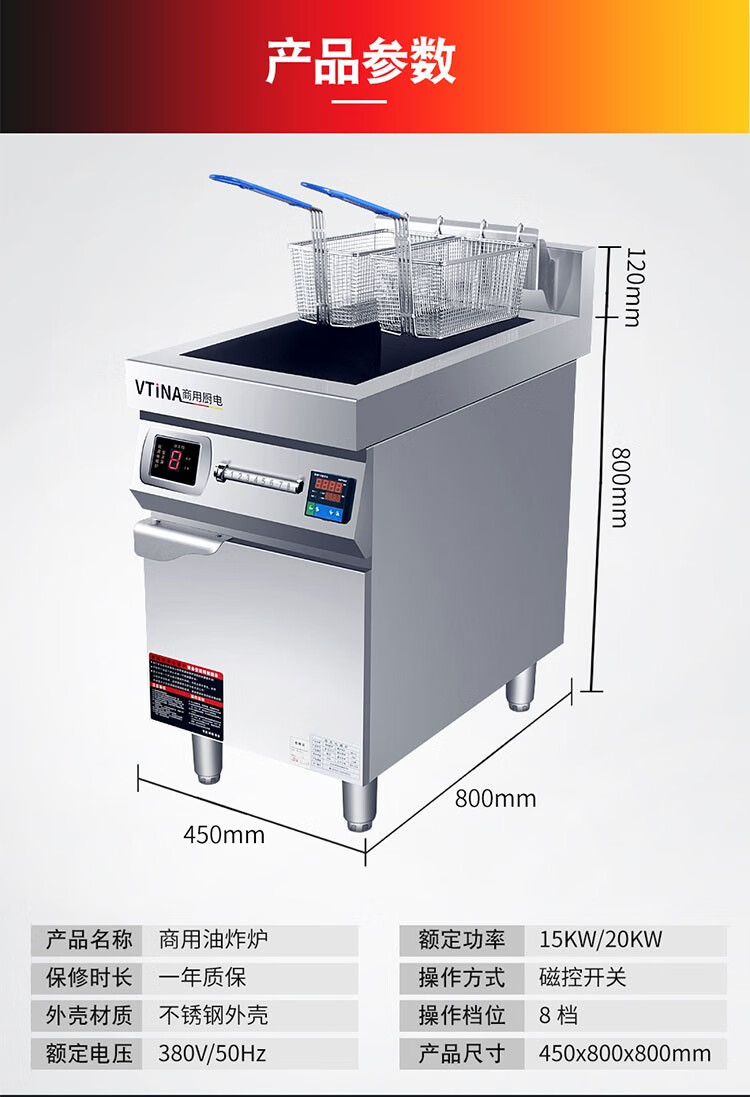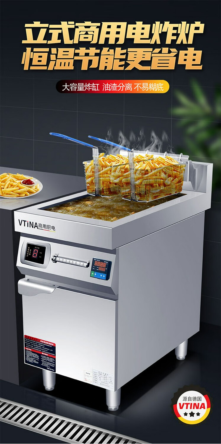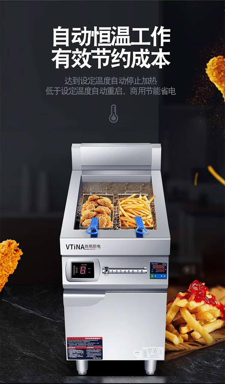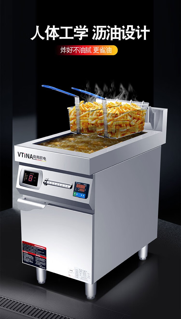MOINA single-cylinder electric fryer commercial high-power 8 kilowatt hotel bar French fries fryer picture price product cylinder double screen fryer-220v-6k0cm 100cm