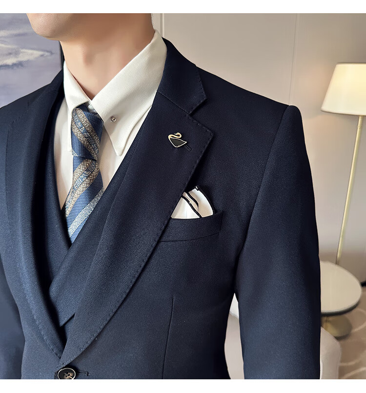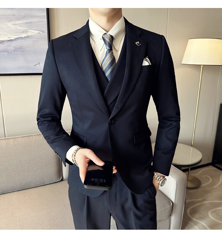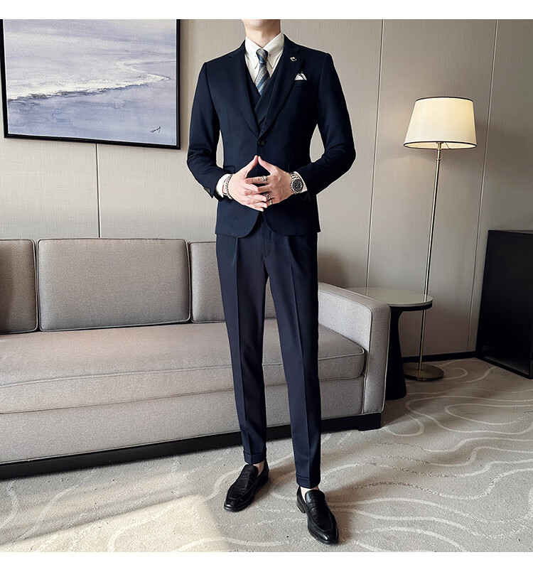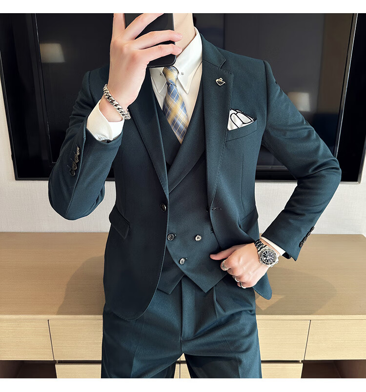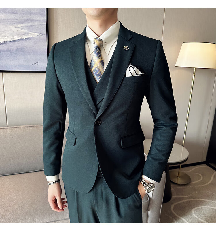 Playboy (PLAYBOY) high-end suit suit, men's groom's wedding dress, men's slim suit, business commuter suit, British style three-piece suit, dark green suit + trousers + vest 2XL