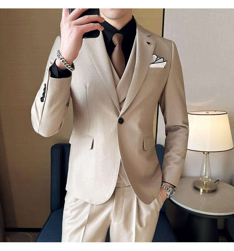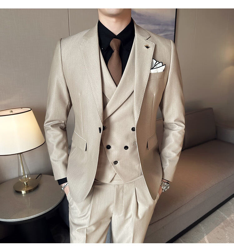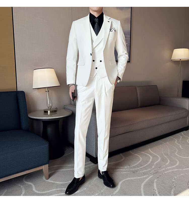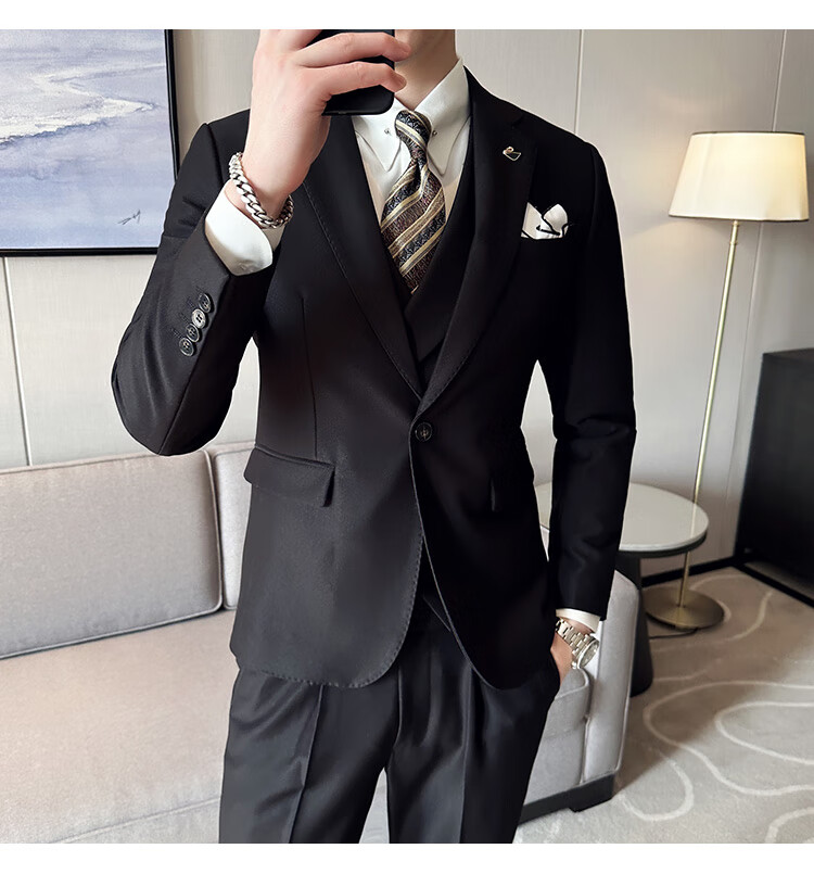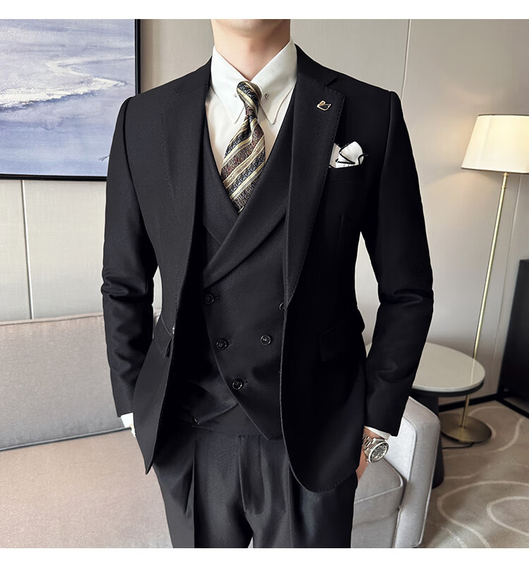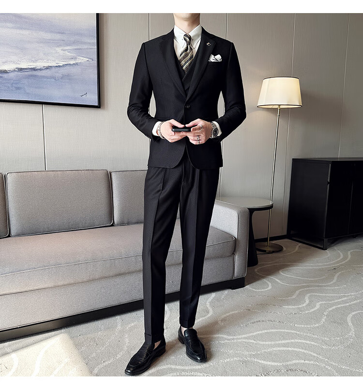 Playboy (PLAYBOY) high-end suit suit, men's groom's wedding dress, men's slim suit, business commuter suit, British style three-piece suit, dark green suit + trousers + vest 2XL