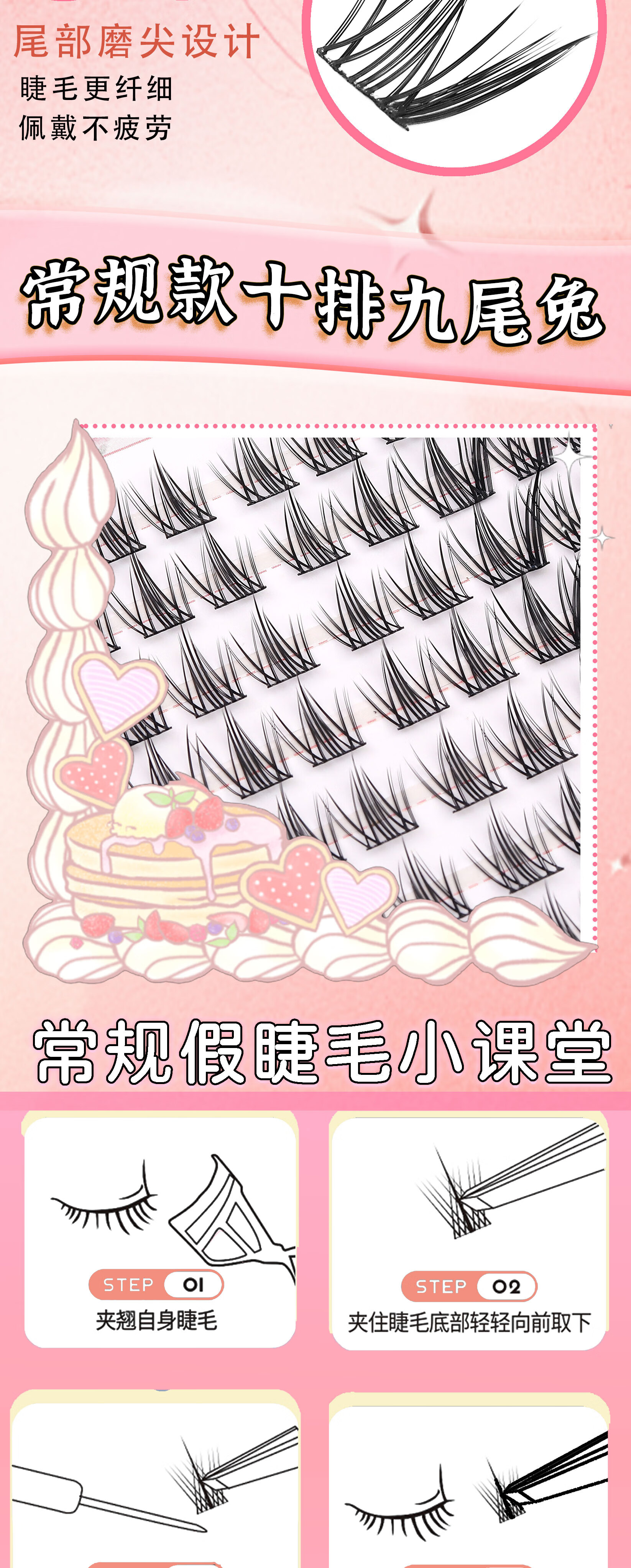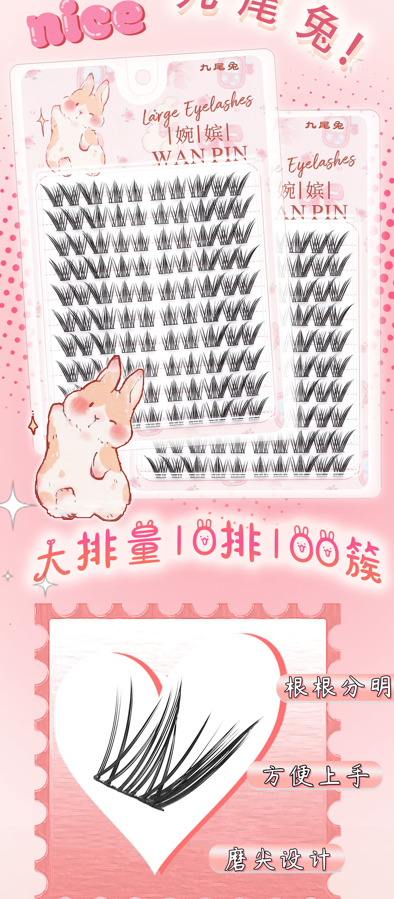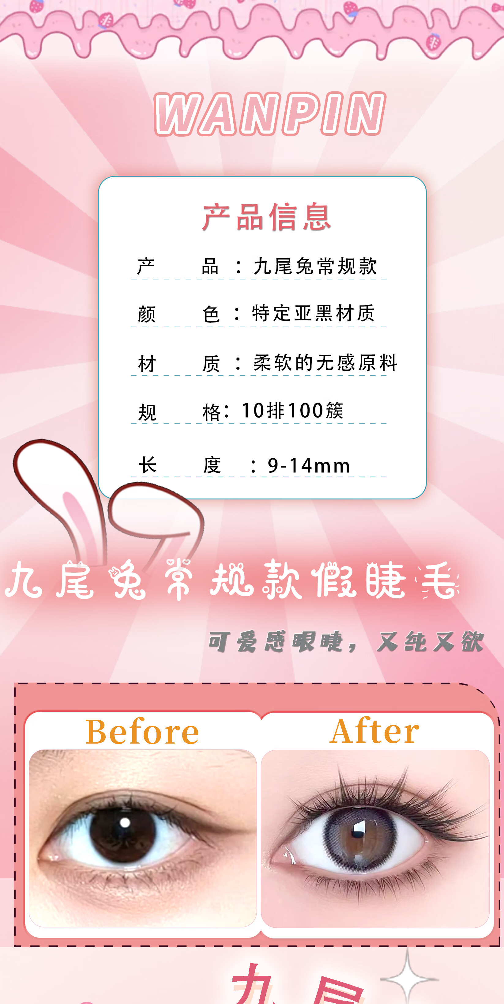 Nine-tailed rabbit and fox false eyelashes flying sideways, naturally simulated thick curls, lengthening the ends of the eyes, photogenic eyelash grafting for novices, Wanbi natural nine-tailed rabbit 10 rows (one box), no tools