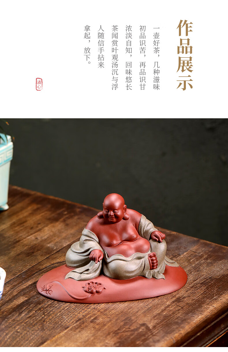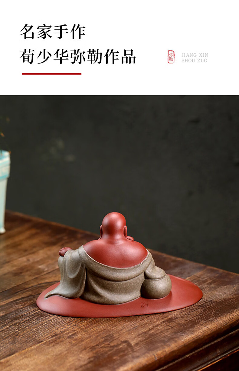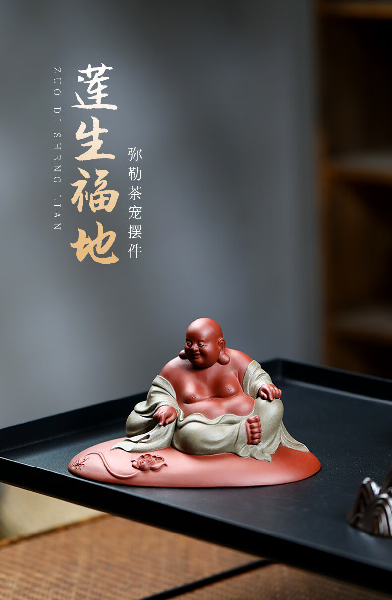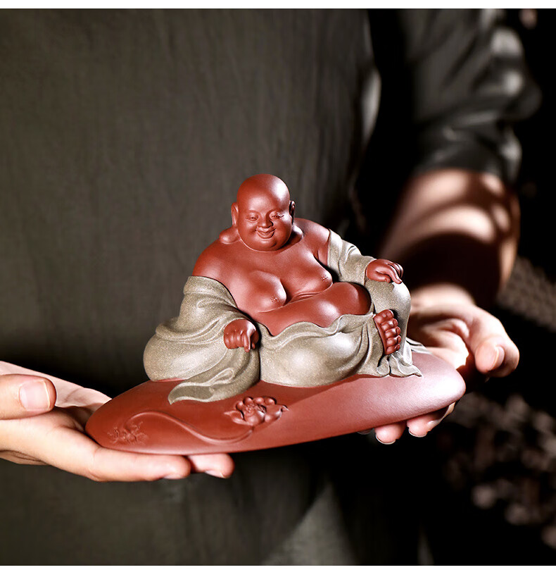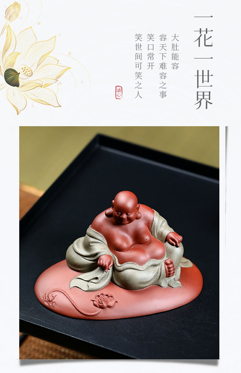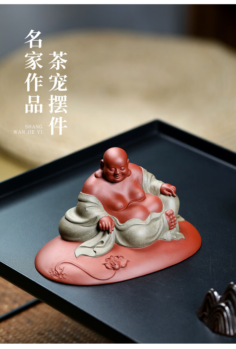 Chengyun Shangzun Yixing purple clay tea pet ornaments handmade by the famous artist Xun Shaohua Maitreya Buddha boutique Laughing Buddha office home sculpture tea toy Lotus blessed land (handmade by Xun Shaohua)