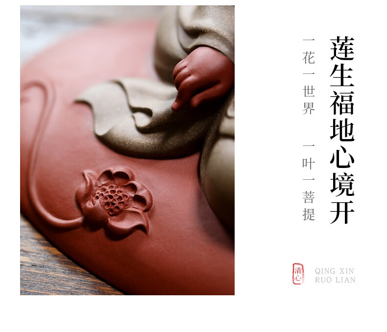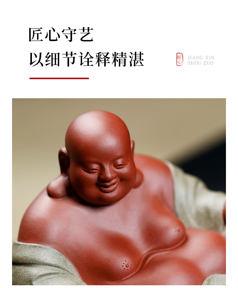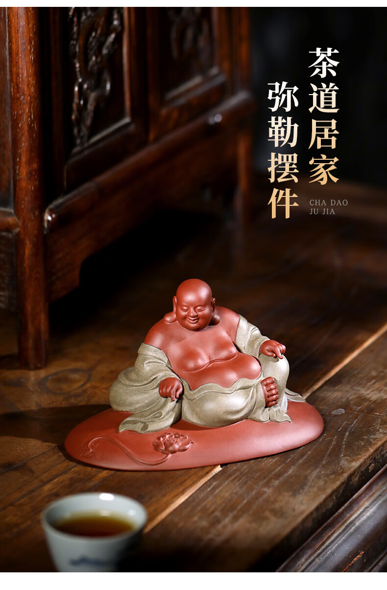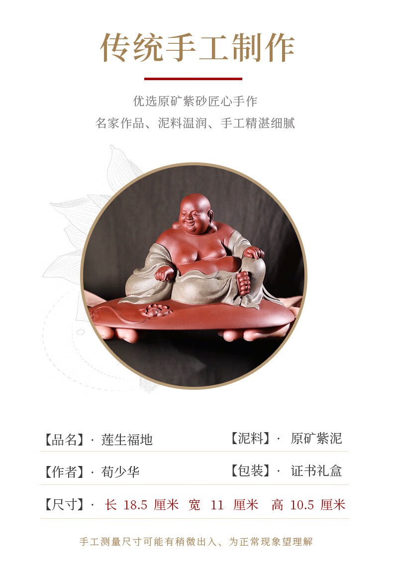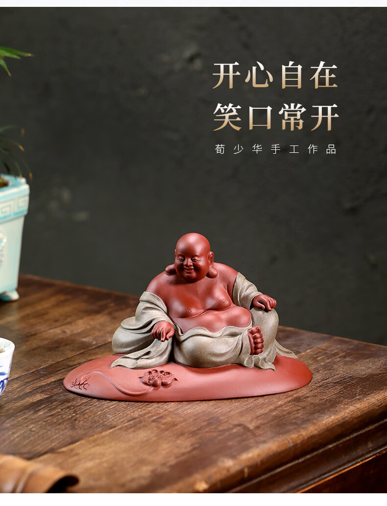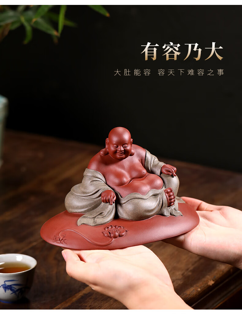 Chengyun Shangzun Yixing purple clay tea pet ornaments handmade by the famous artist Xun Shaohua Maitreya Buddha boutique Laughing Buddha office home sculpture tea toy Lotus blessed land (handmade by Xun Shaohua)