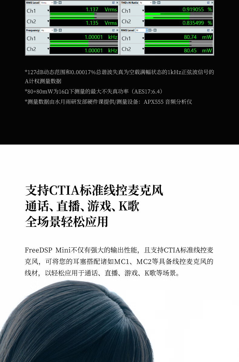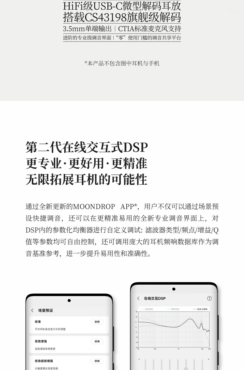 Shuiyueyu MOONDROP FreeDSP Mini hifi-level micro decoder amp typec-3.5 supports DSP tuning and microphone voice typec-3.5 (supports microphone)