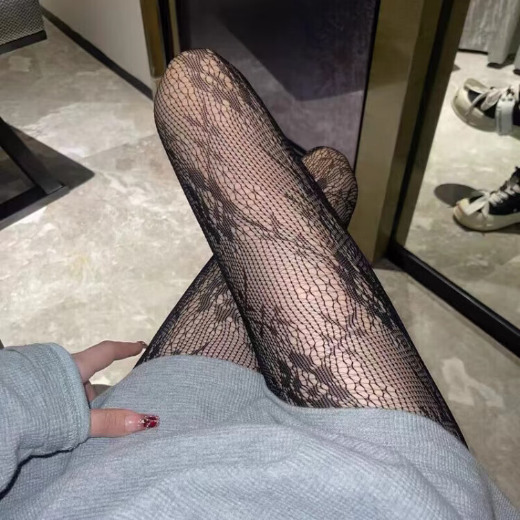 Lace fishnet stockings white stockings women's thin lolita ultra-thin jk stockings pantyhose large size white silk Japanese one-piece lace fishnet stockings flower vine white 1 piece one size fits all