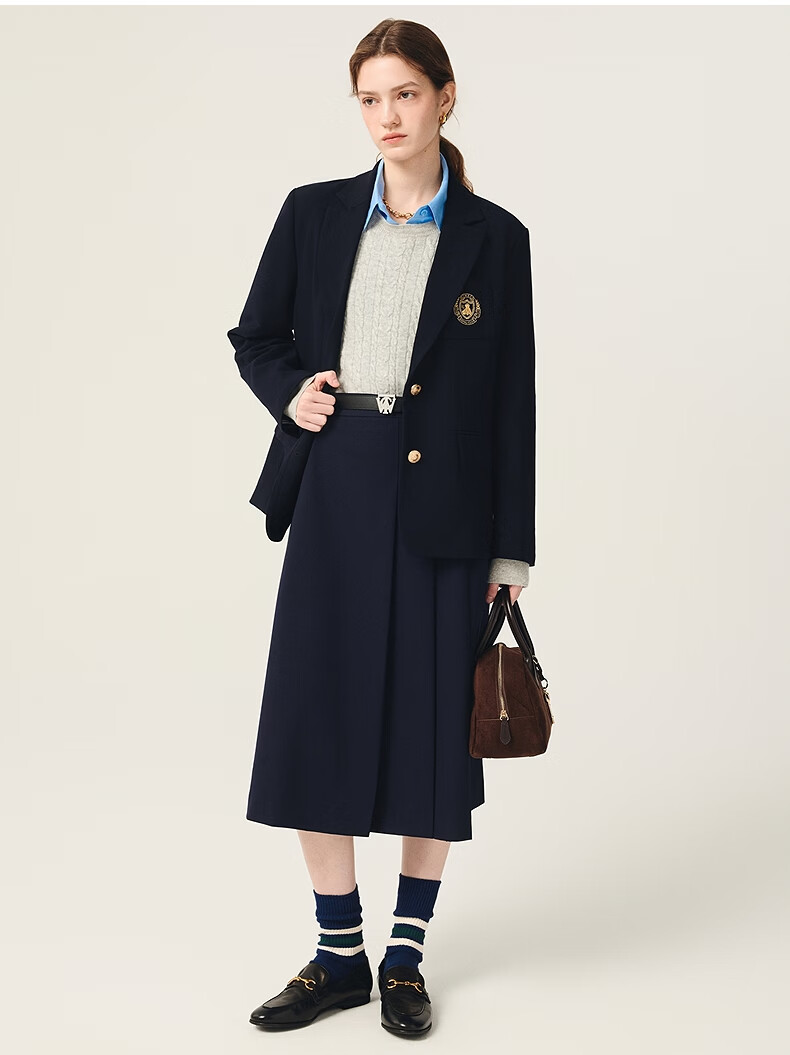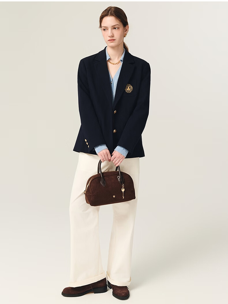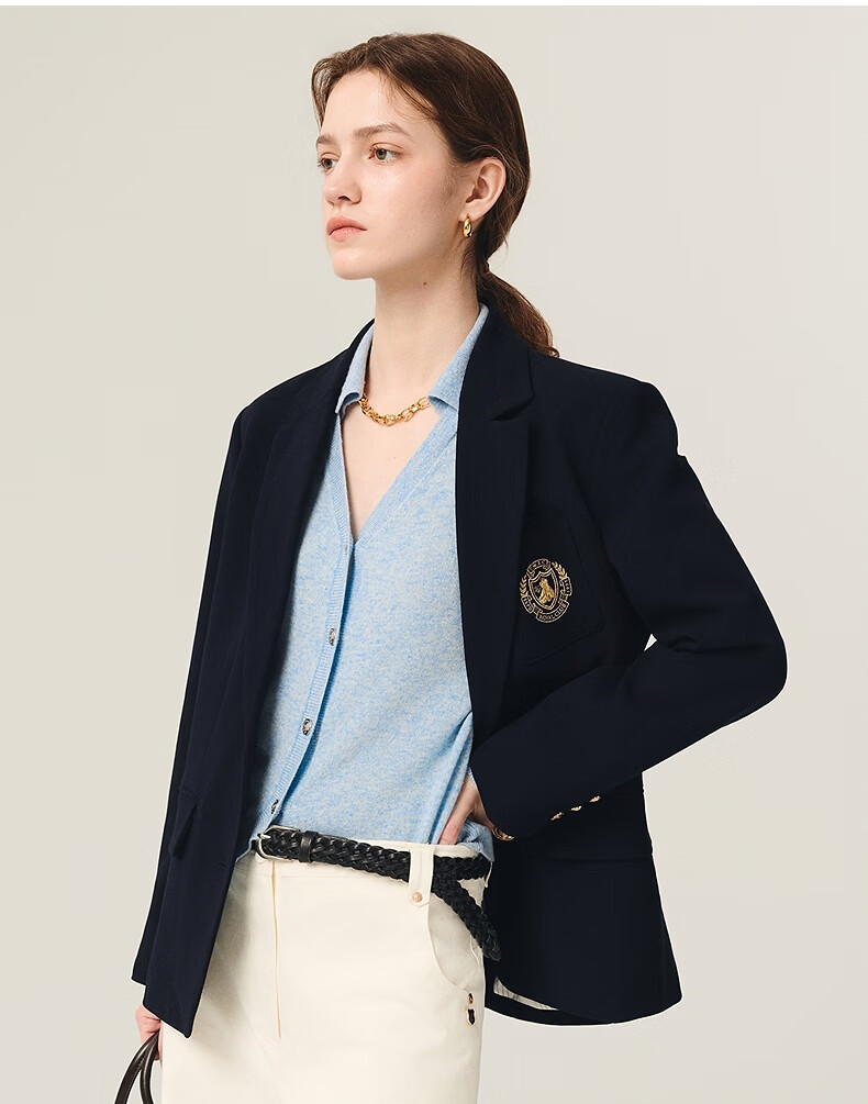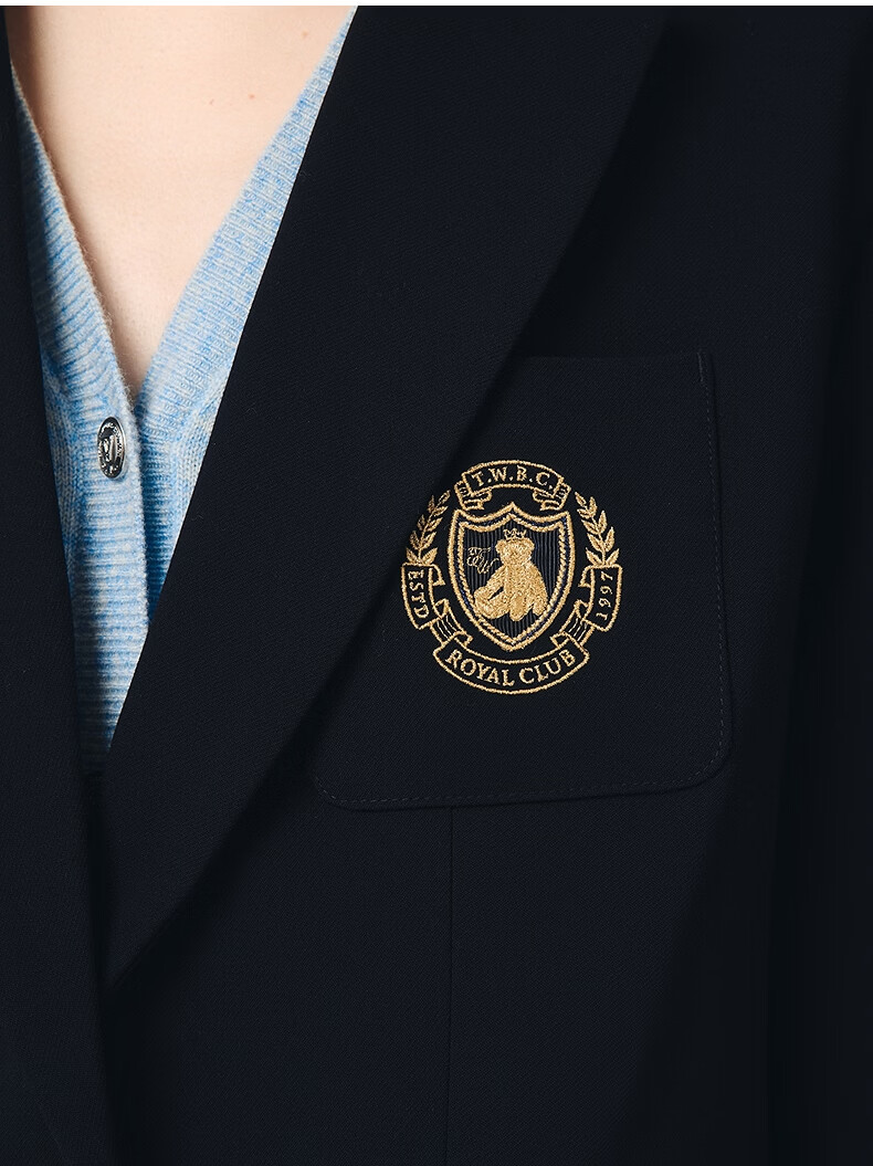 Teenie Weenie Gold Buckle Blazer Bear Women's College Style Commuting Short Blazer Jacket Navy L