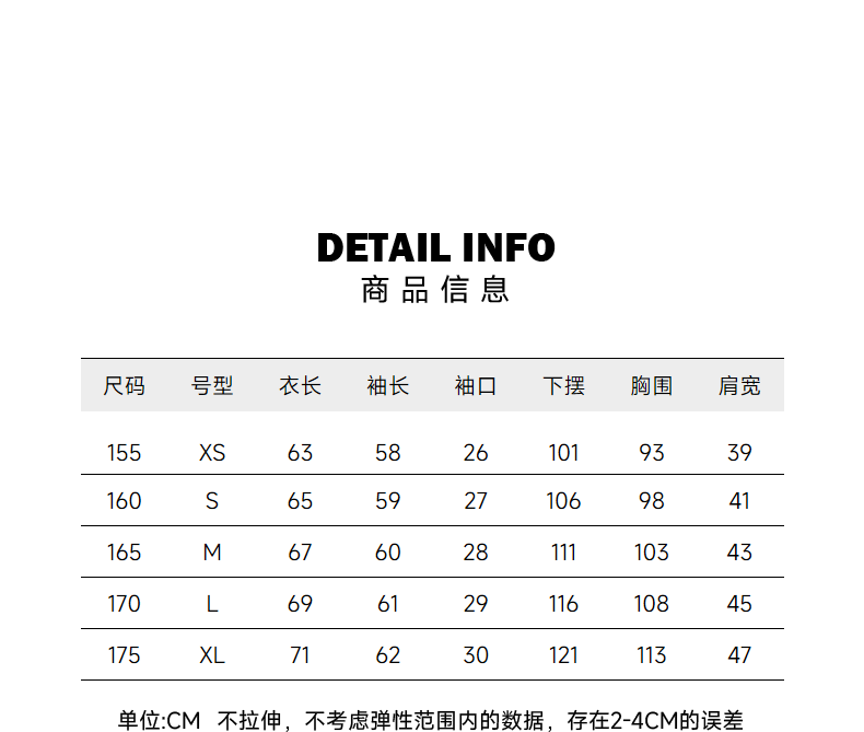 China (cm) 160-165/84-86 165-170 / 88-90 167-172 / 92-96 168-173 / 98-102 170-176 / 106-110