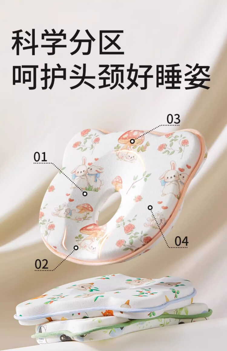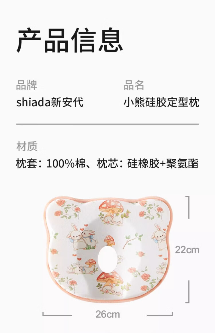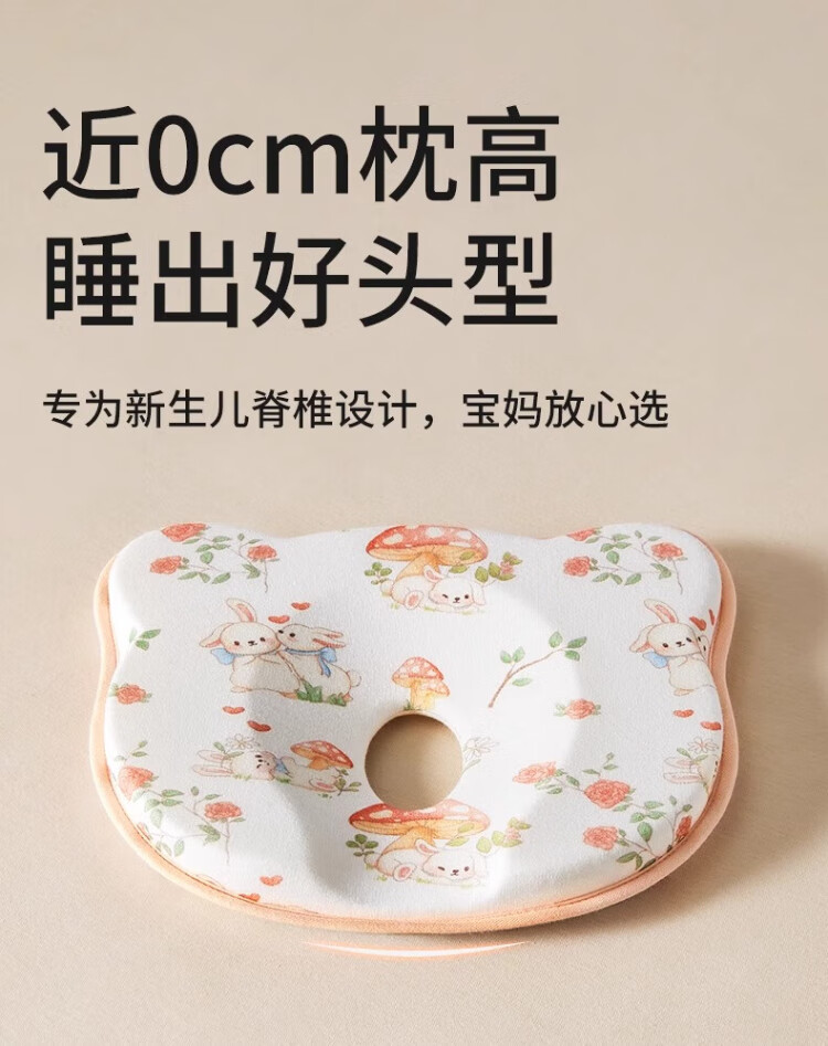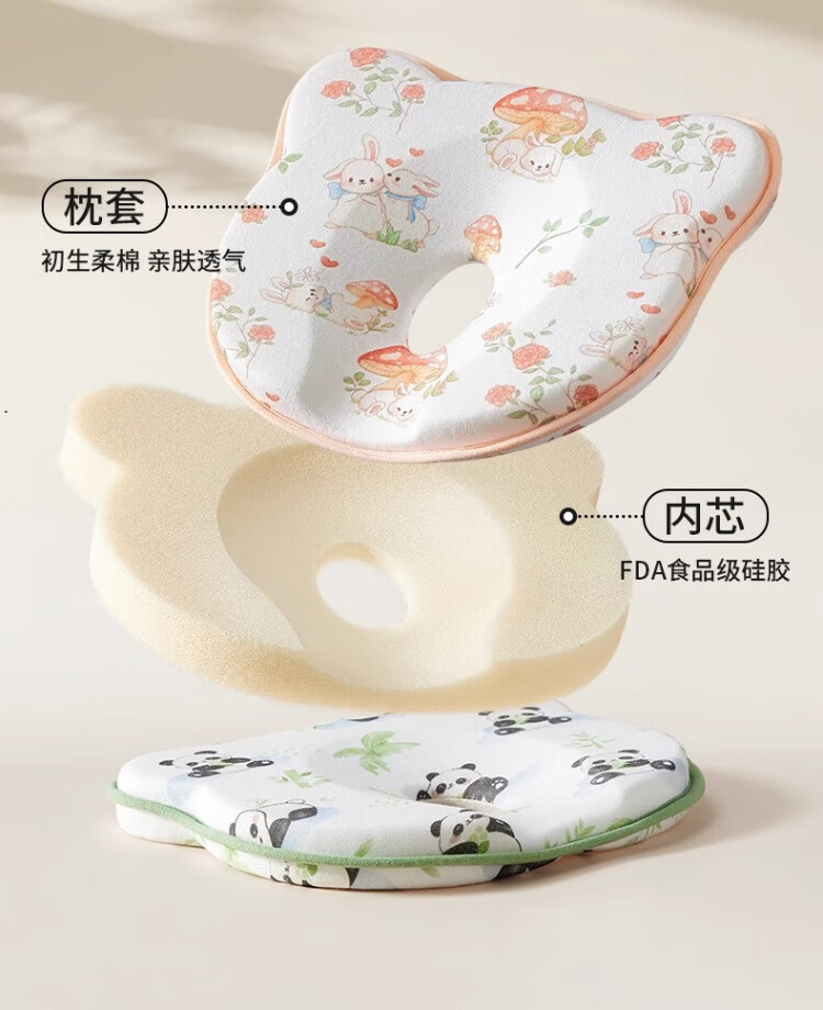 New Andai Baby Pillow Shaping Pillow Newborn 0-1-3 Years Old Shaping Pillow Breathable Pillow Baby Shaping Pillow Silicone Shaping Pillow Cute Rabbit Party Antibacterial Washable/Nearly 0 Pillow Height