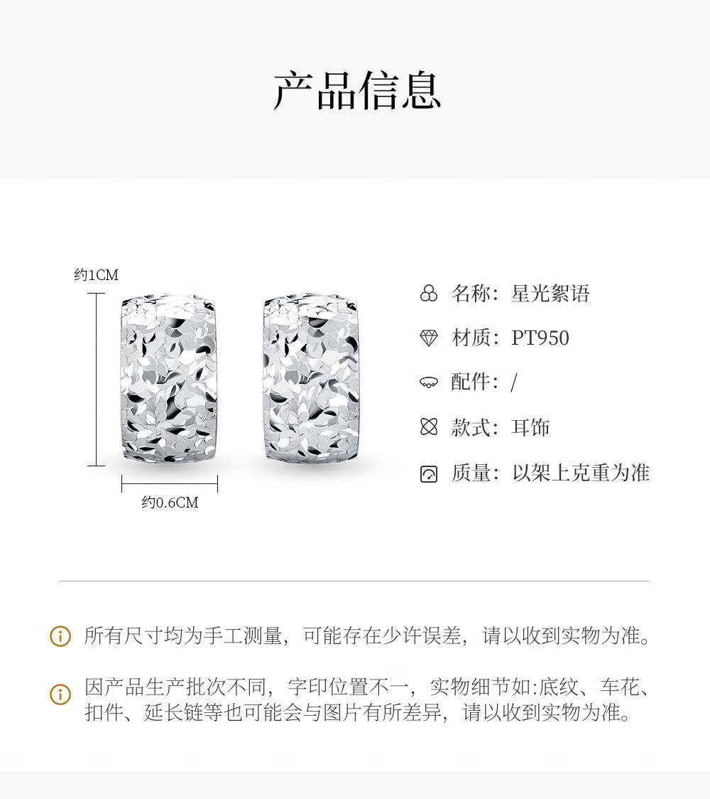 Ming brand jewelry platinum earrings Pt950 white gold starlight whispering earrings BFH0135 platinum earrings about 3.44 grams