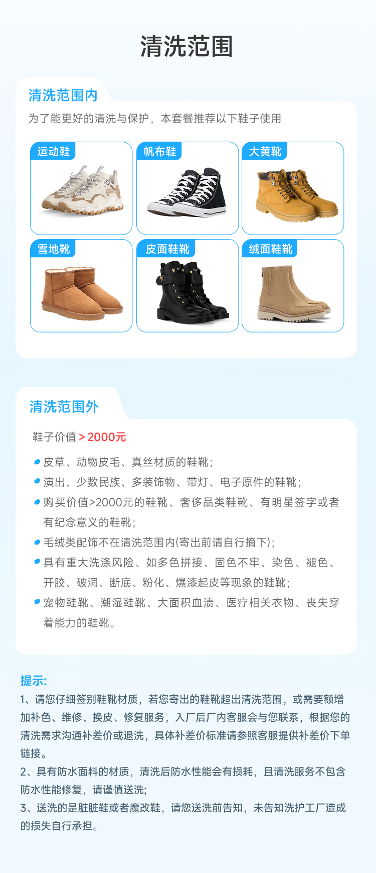 Professional deep cleaning, shoe cleaning service, any footwear cleaning, door-to-door pickup, dry cleaning, shoe brushing, leather/suede boots, sterilization and disinfection, footwear cleaning, any footwear washing, 2 pairs
