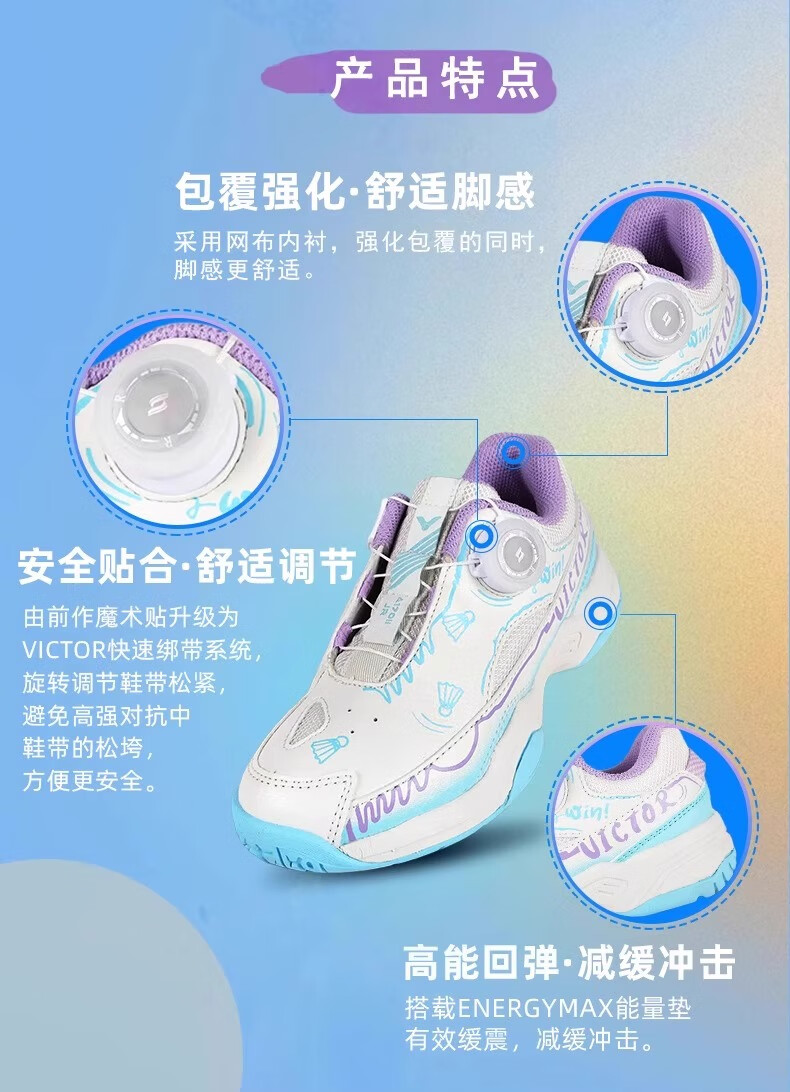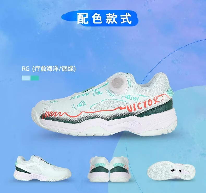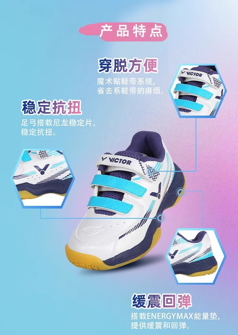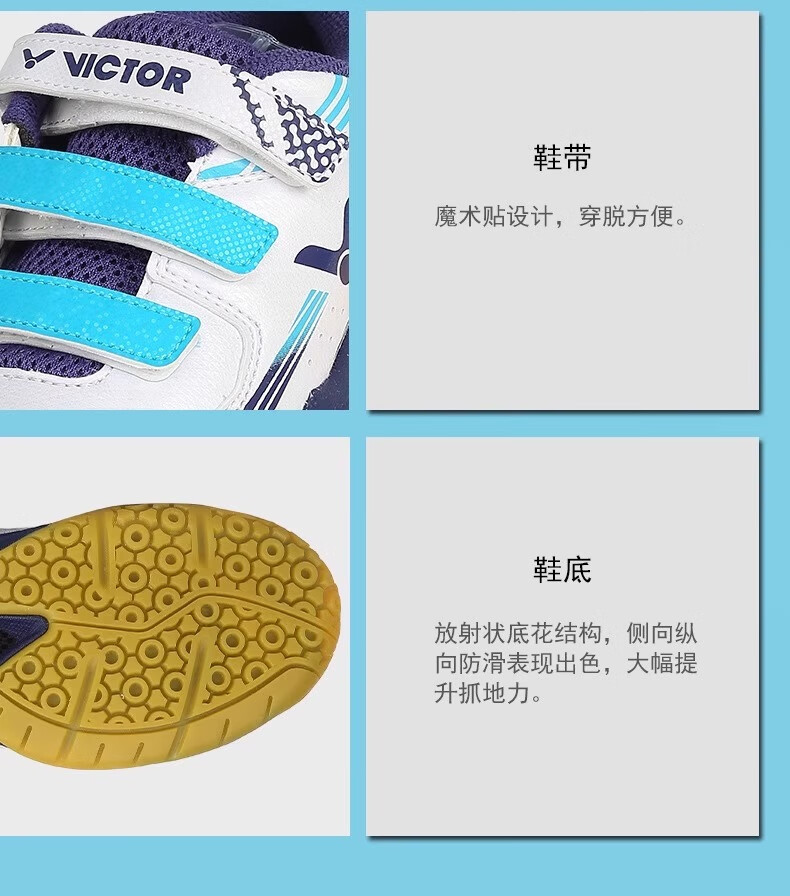 VICTOR New Victory Children's Badminton Shoes Boys and Girls Sports Shoes Youth Anti-Slip J Official Flagship Authentic 220J B Medieval Blue 20 190 _31 Code