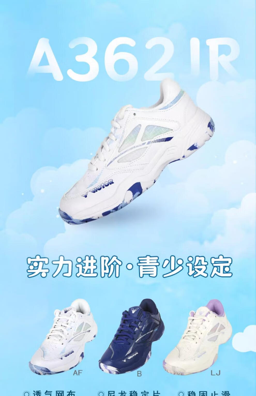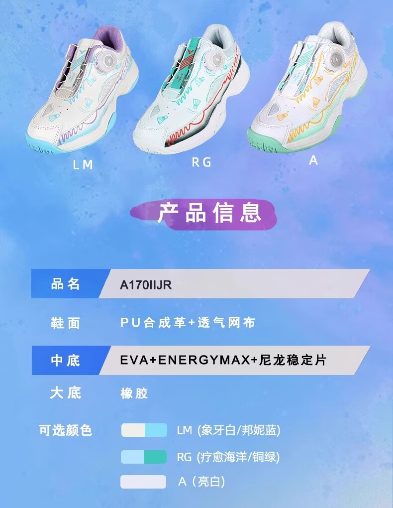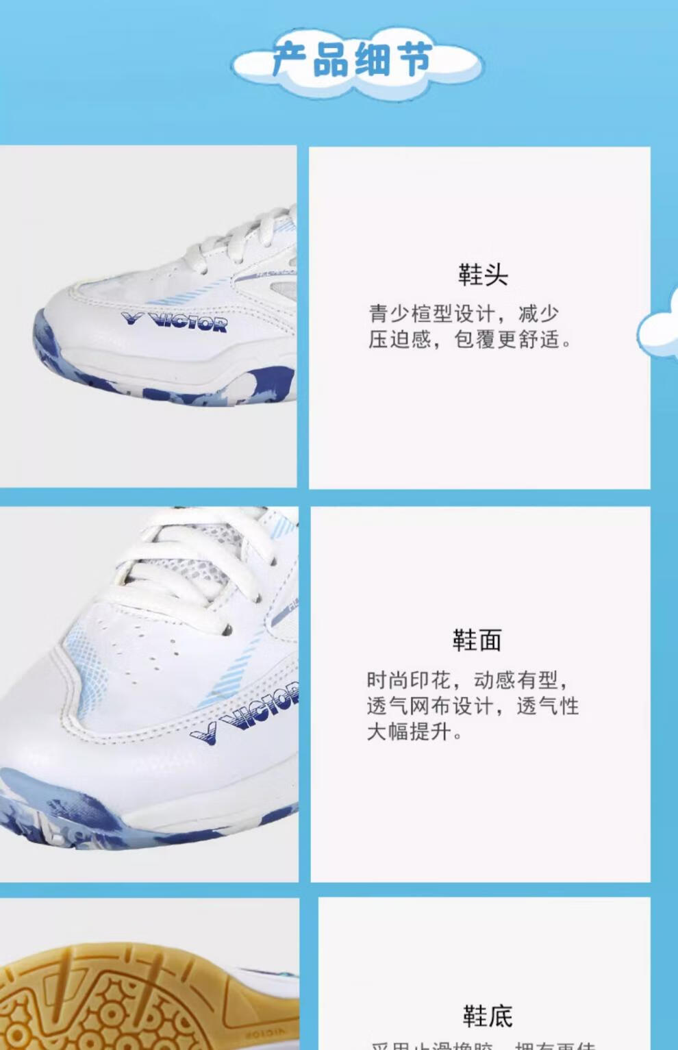 VICTOR New Victory Children's Badminton Shoes Boys and Girls Sports Shoes Youth Anti-Slip J Official Flagship Authentic 220J B Medieval Blue 20 190 _31 Code