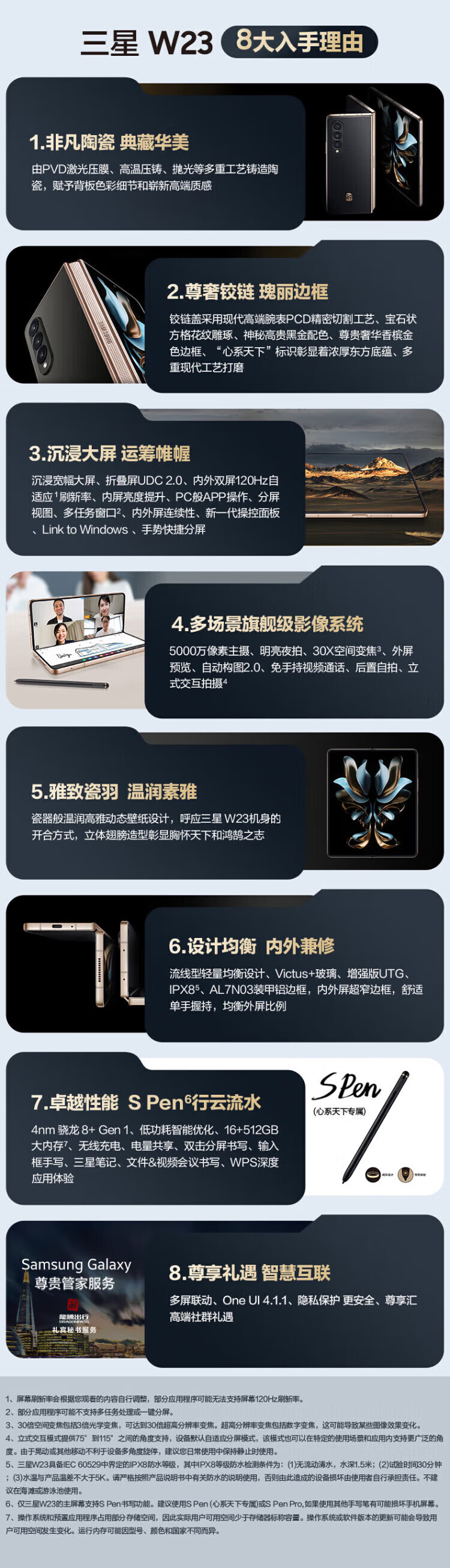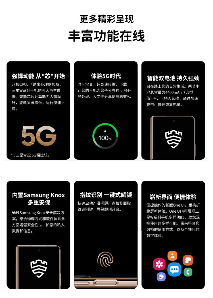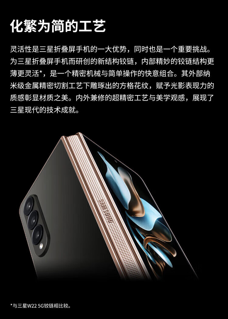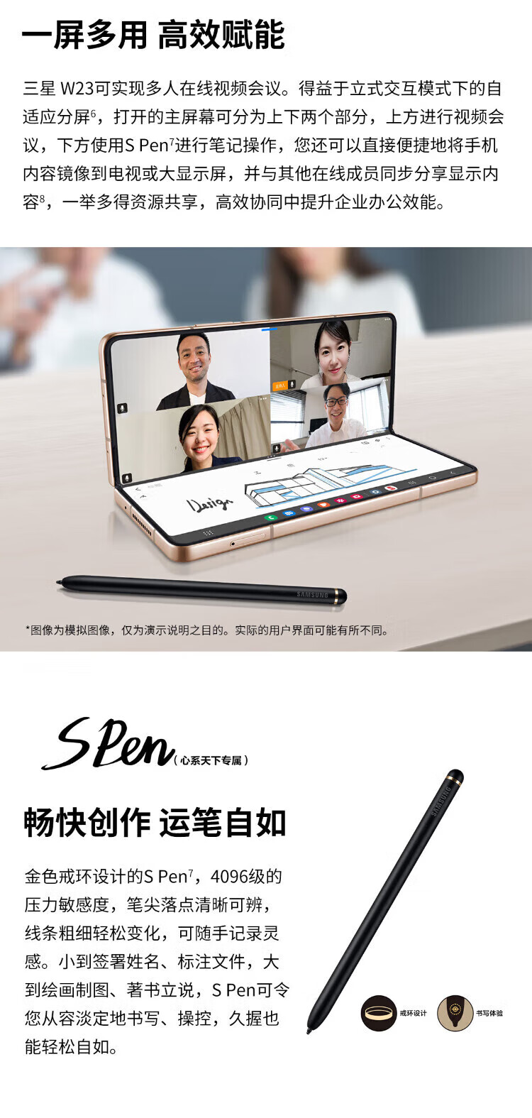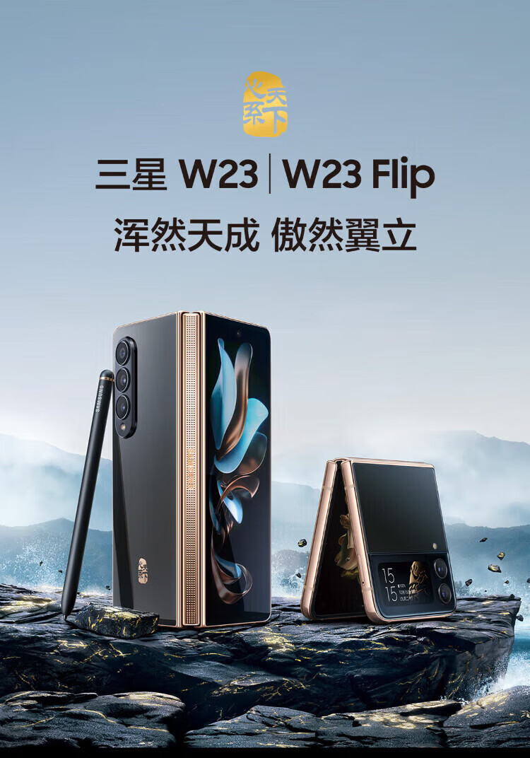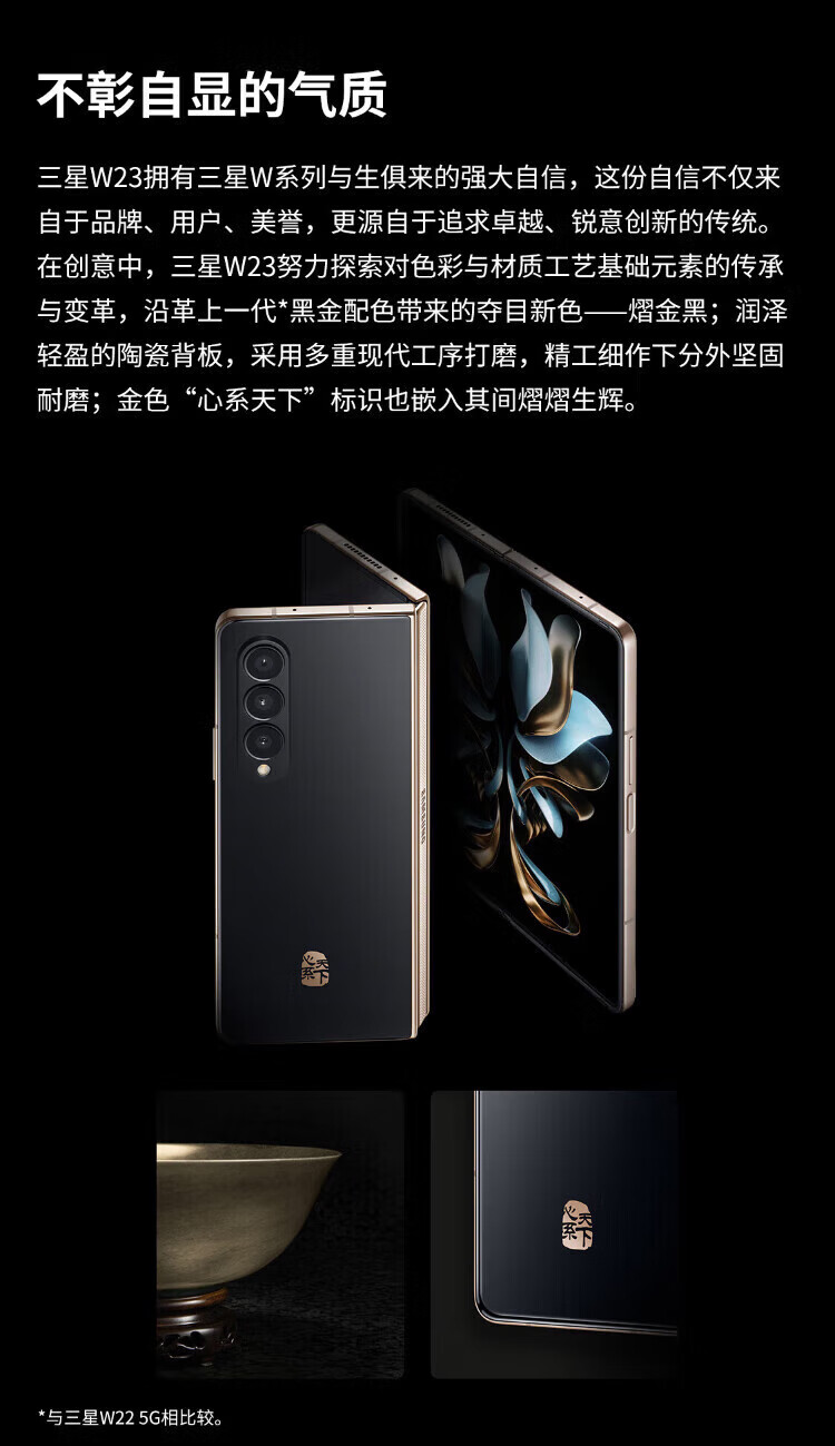 Samsung (SAMSUNG) display phone W23 cares about the world, luxury hinge, 5G folding screen mobile phone, Samsung mobile phone, store phone, shiny gold black, 16GB+512GB