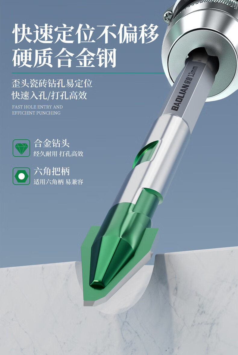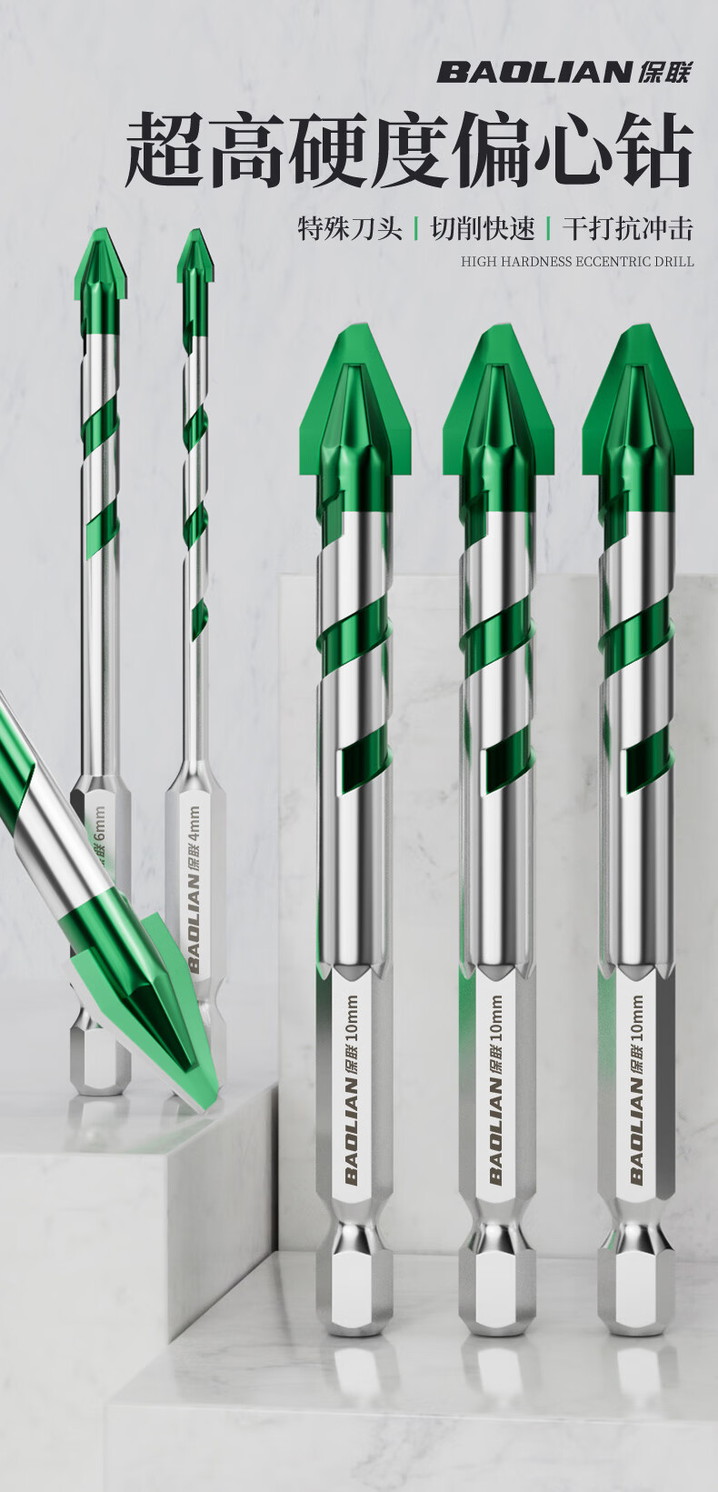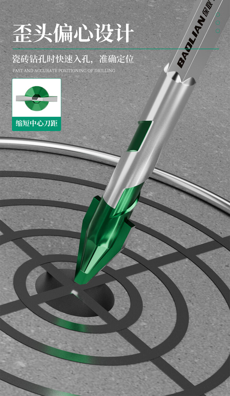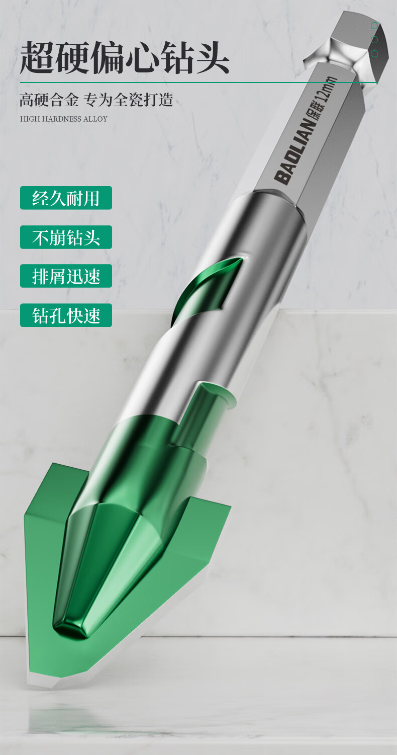 Baolian ceramic tile drill bit concrete electric hand drill for drilling super hard tilted head ceramic hexagonal handle eccentric special triangle drill super hard alloy spiral eccentric drill 4mm 2 pieces