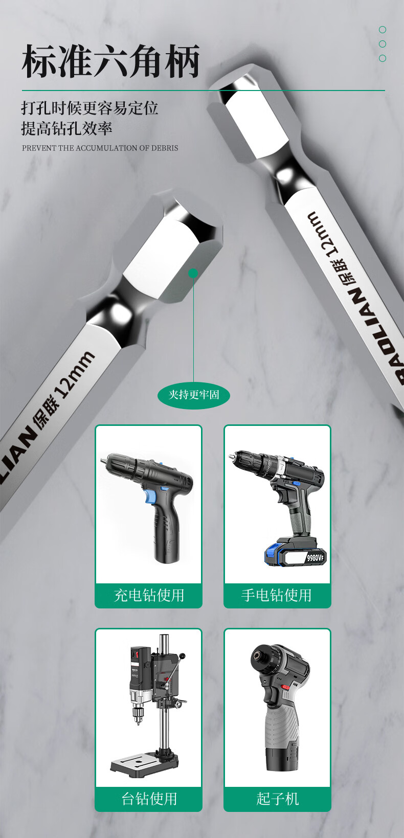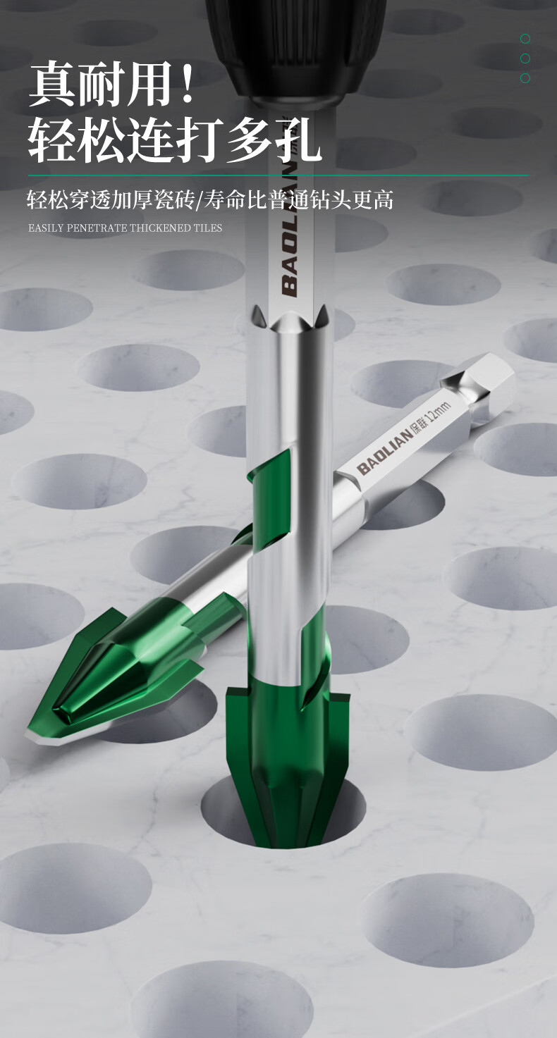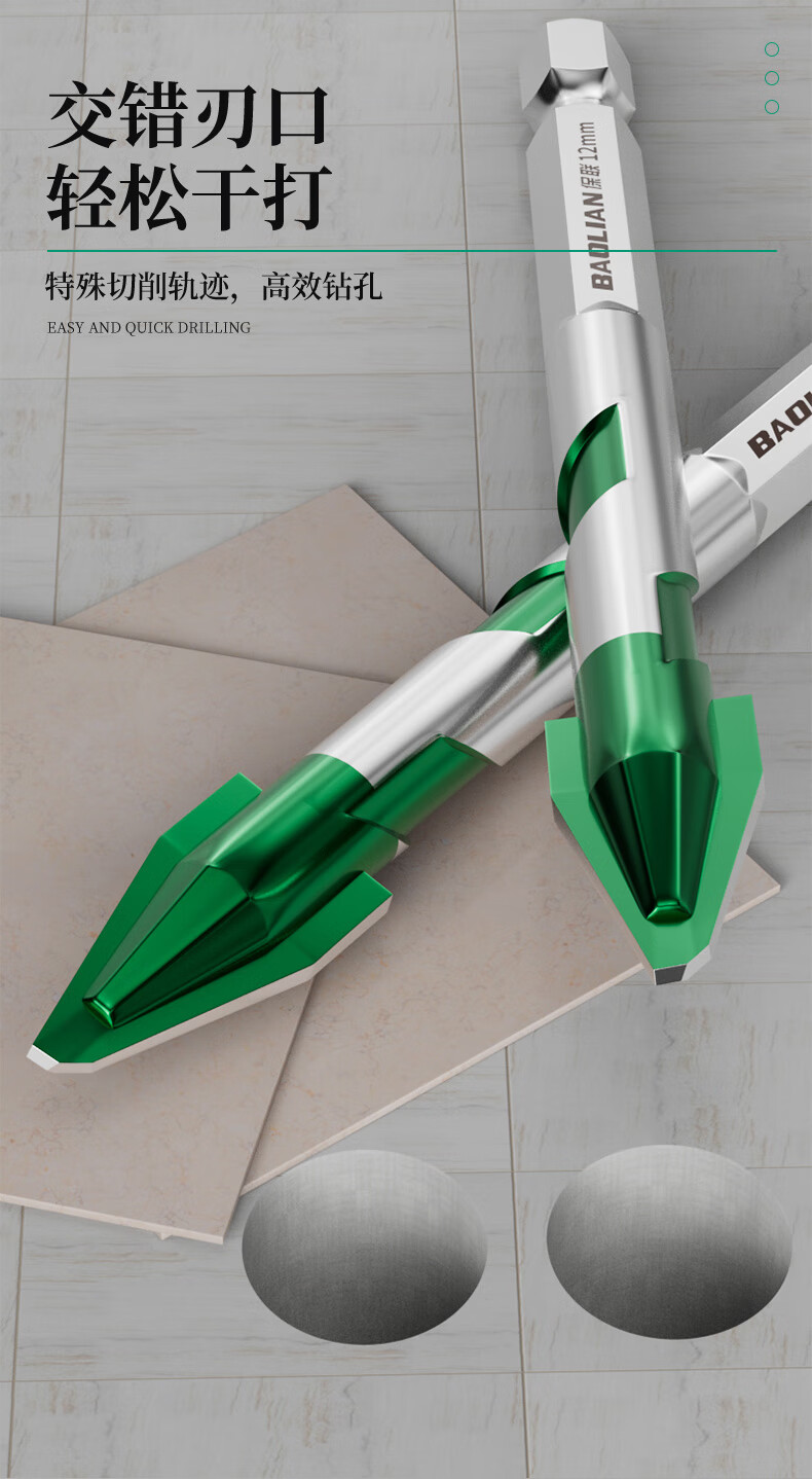 Baolian ceramic tile drill bit concrete electric hand drill for drilling super hard tilted head ceramic hexagonal handle eccentric special triangle drill super hard alloy spiral eccentric drill 4mm 2 pieces