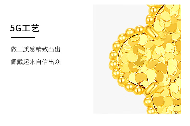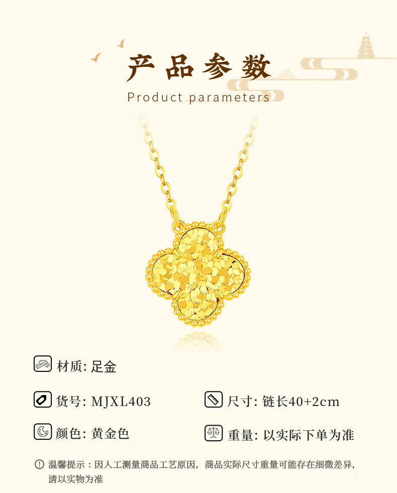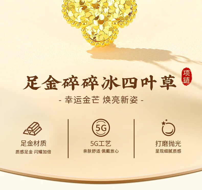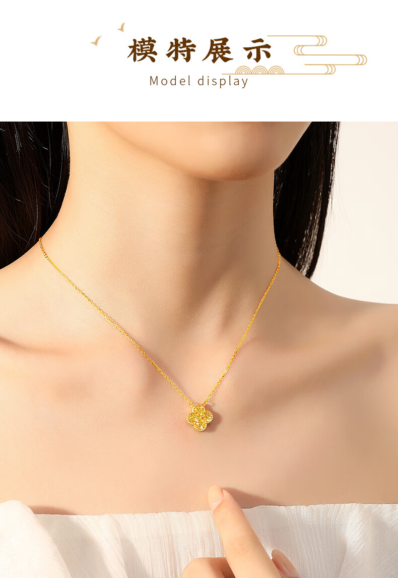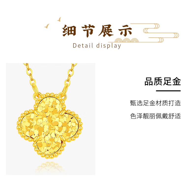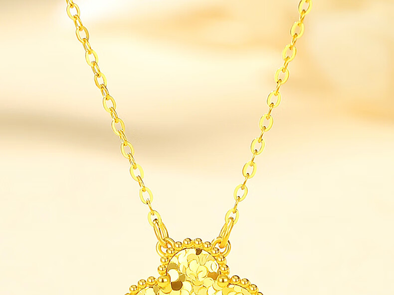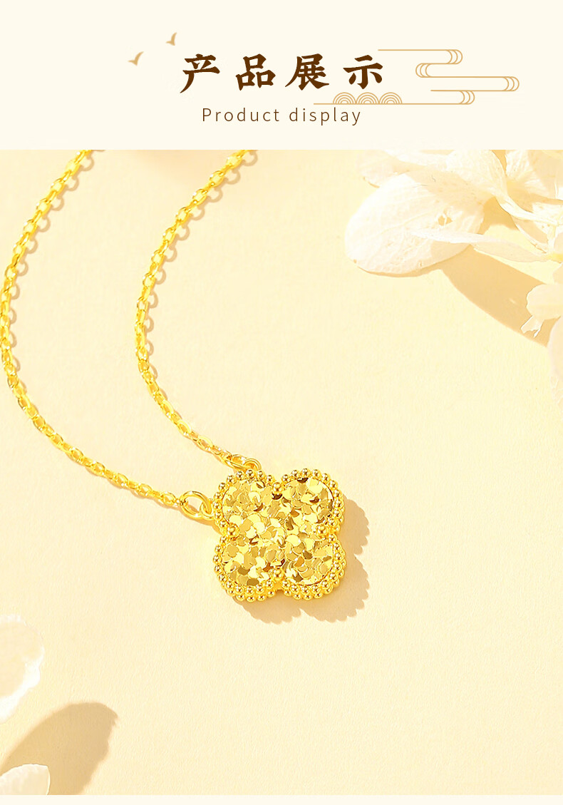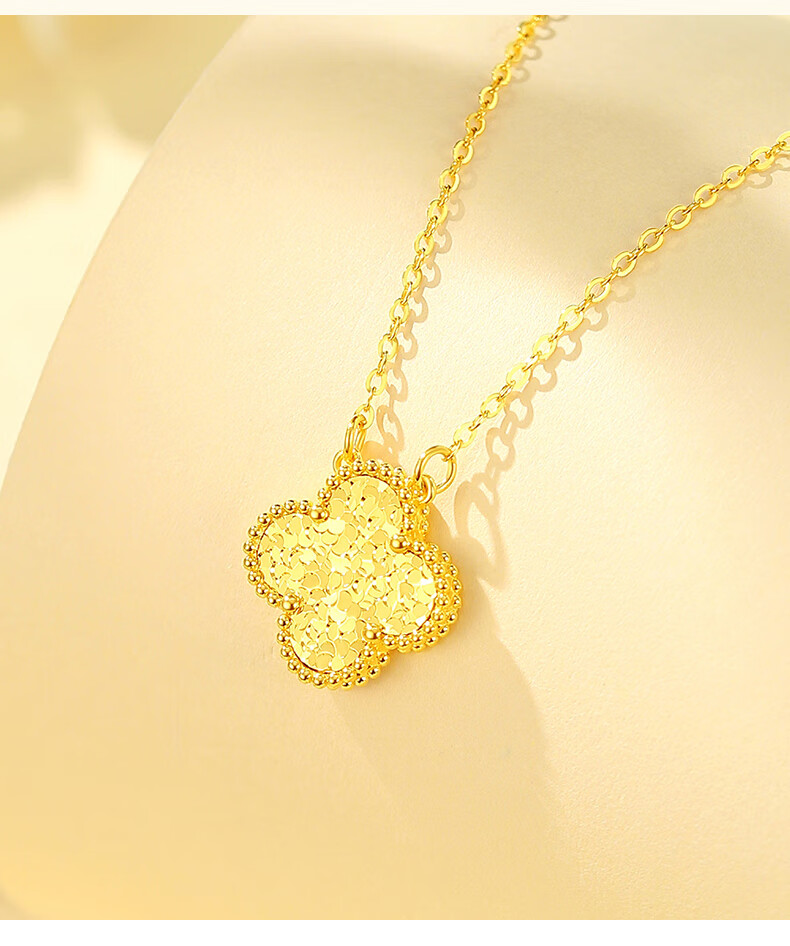 Chinese jewelry crushed ice gold necklace women's pure gold four-leaf clover pendant birthday gift for girlfriend and wife gold weight about 4.2g pure gold chain set