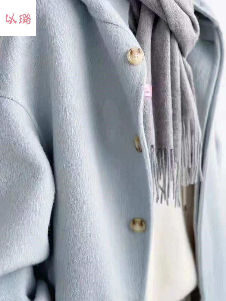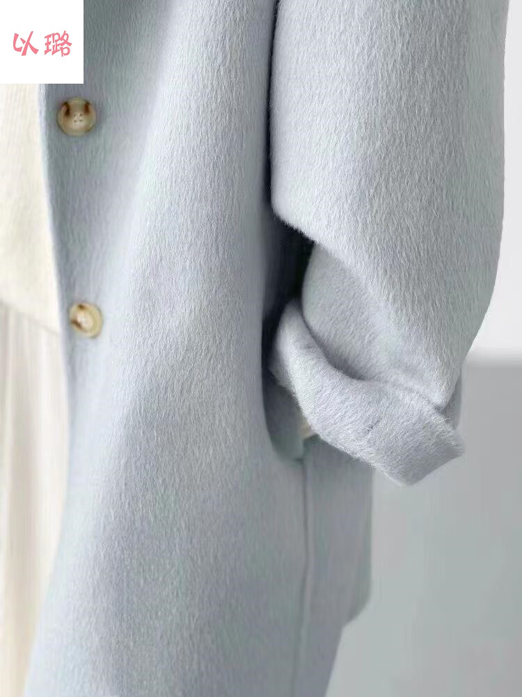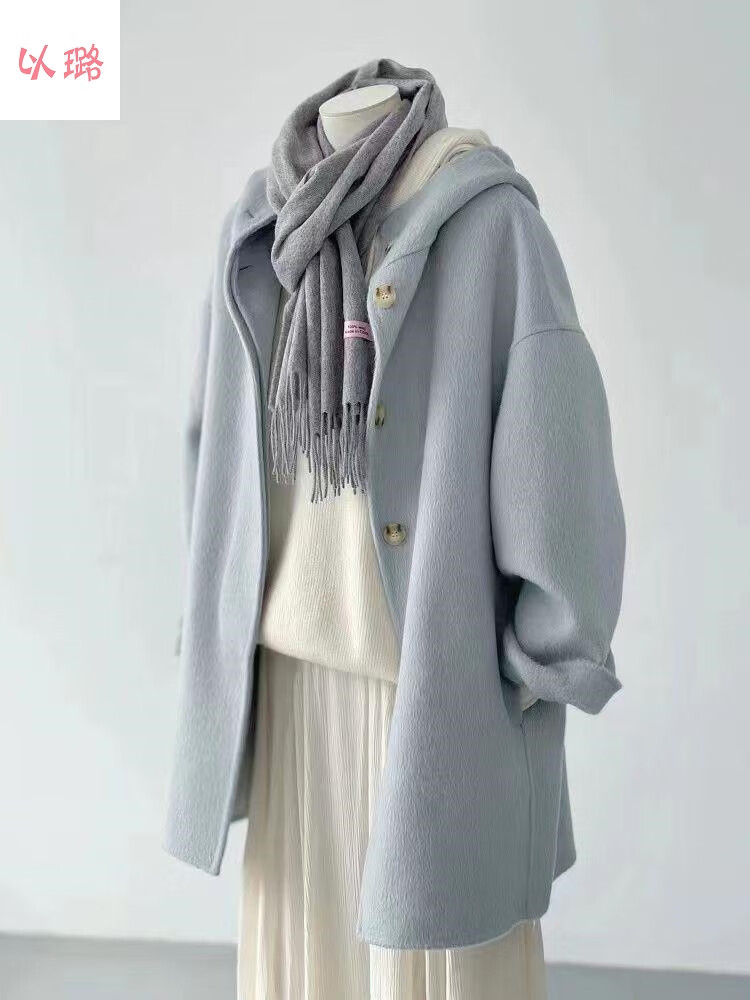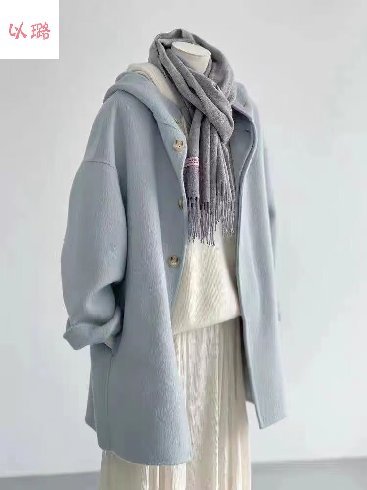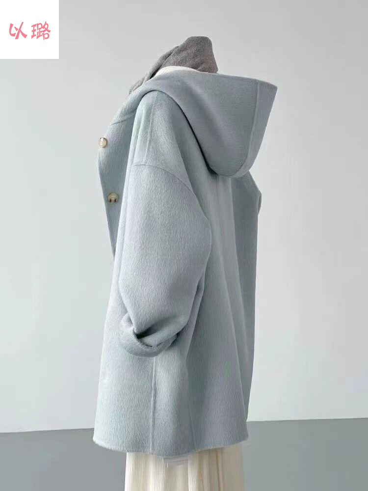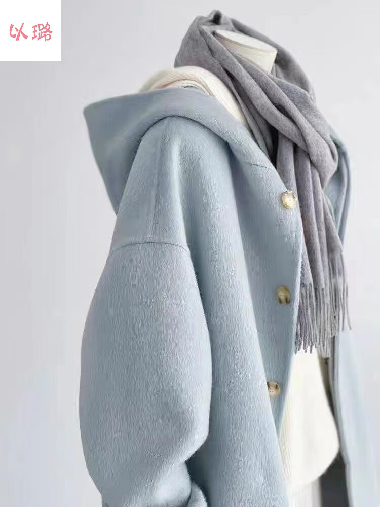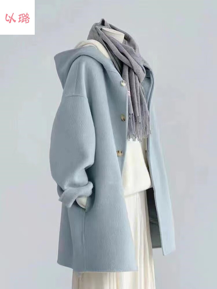 Pierre Cardin fat mm extra large size 300 Jin Jin equals 0.5 kg Woolen coat women's autumn and winter feeling small cream blue hooded coat Picture color XL 110-140 Jin Jin equals 0.5 kg