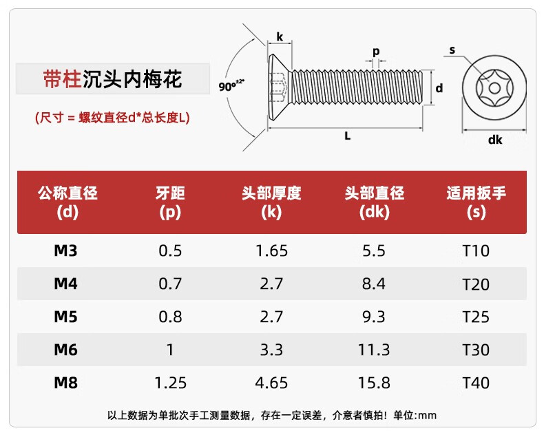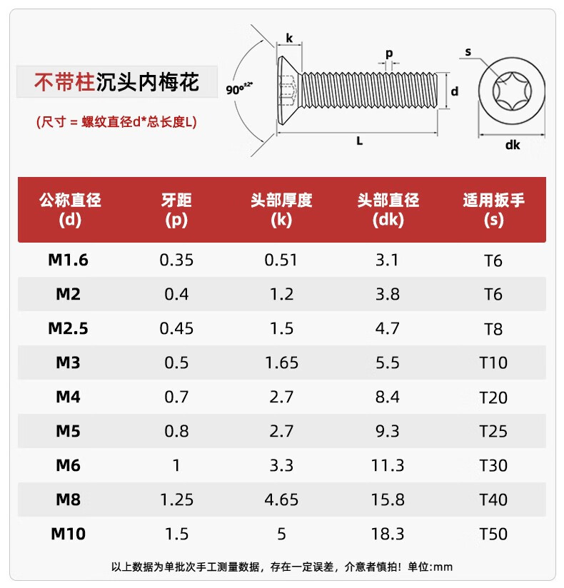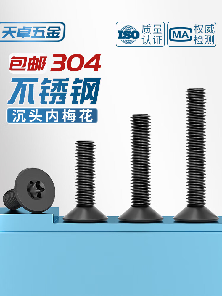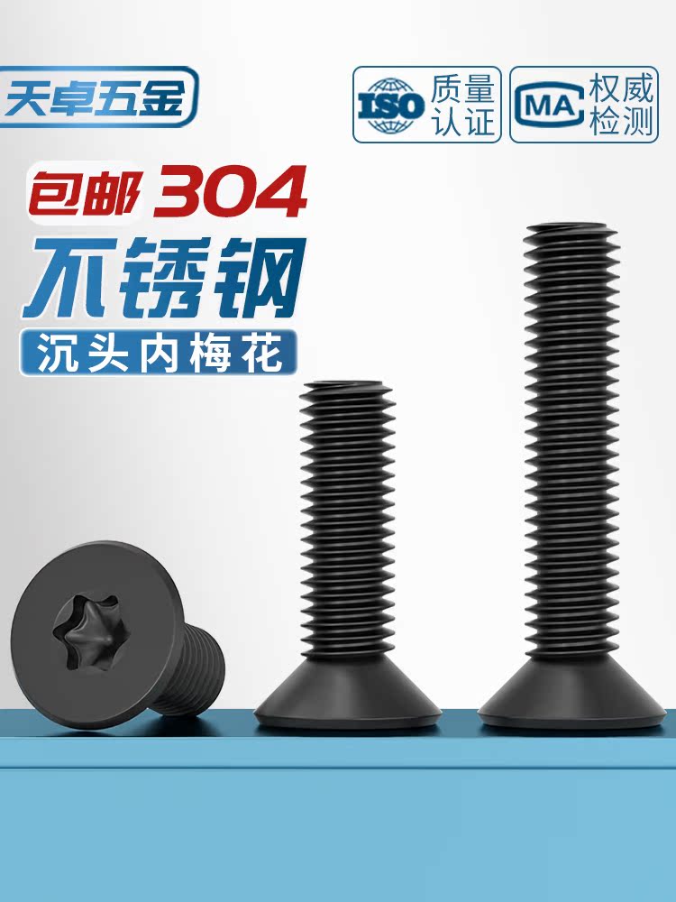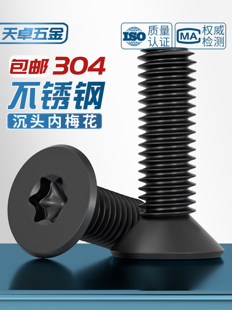 Tianzhuo Hardware black 304 stainless steel countersunk head flat head inner plum anti-theft screws black zinc plated plum machine screws M3M4M5M6 black 304 without column 3*6 50 pcs