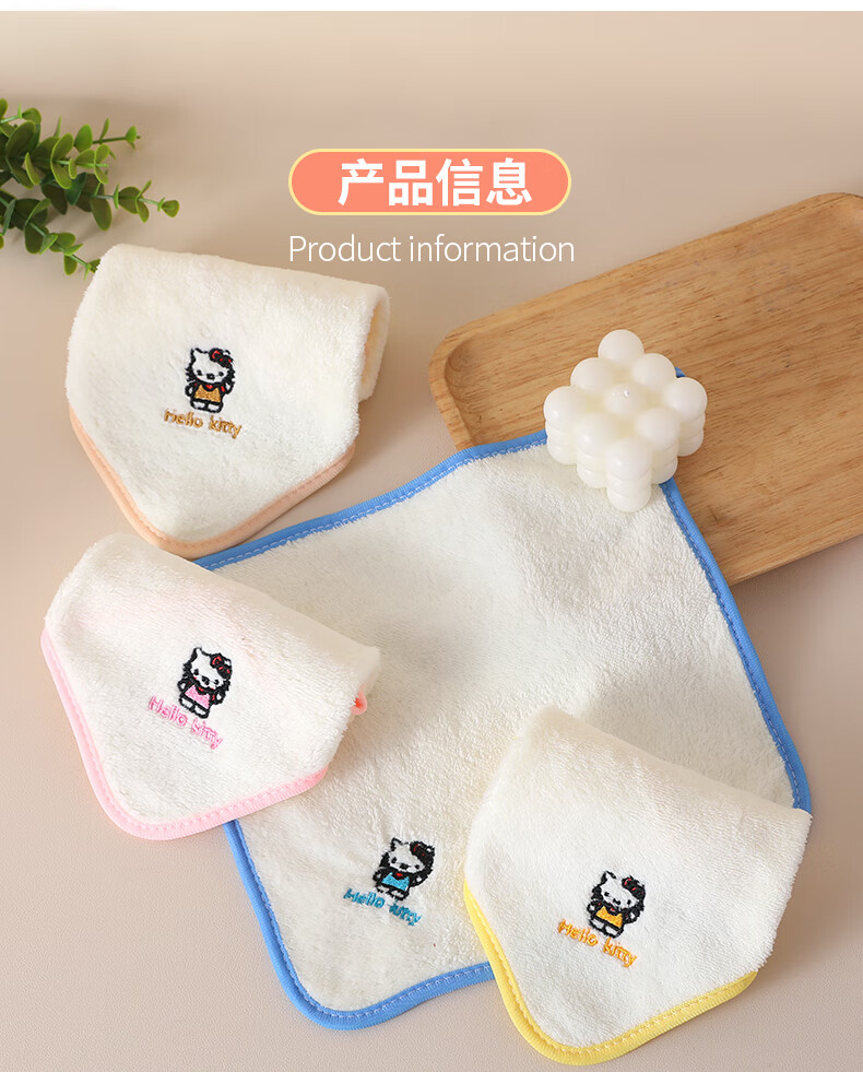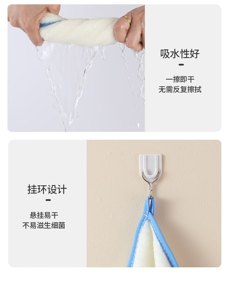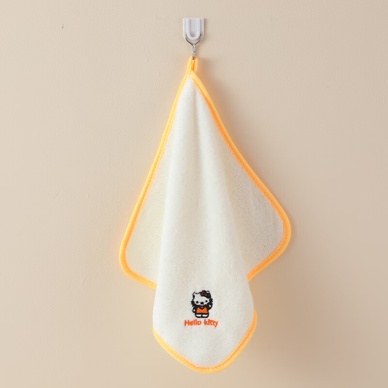 Coral velvet square towel, soft and absorbent, multi-purpose kitchen household rag, cleaning scouring pad, dishwashing rag with hook, white beige edge 25*25cm, 1 pack 25*25