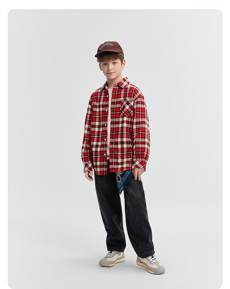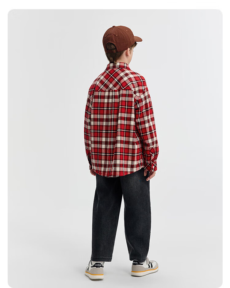 Bala BalaOne Boys' Shirt Children's Big Children's New Children's Clothes Autumn and Winter Plus Velvet Warm Plaid Red Tone 00366 140