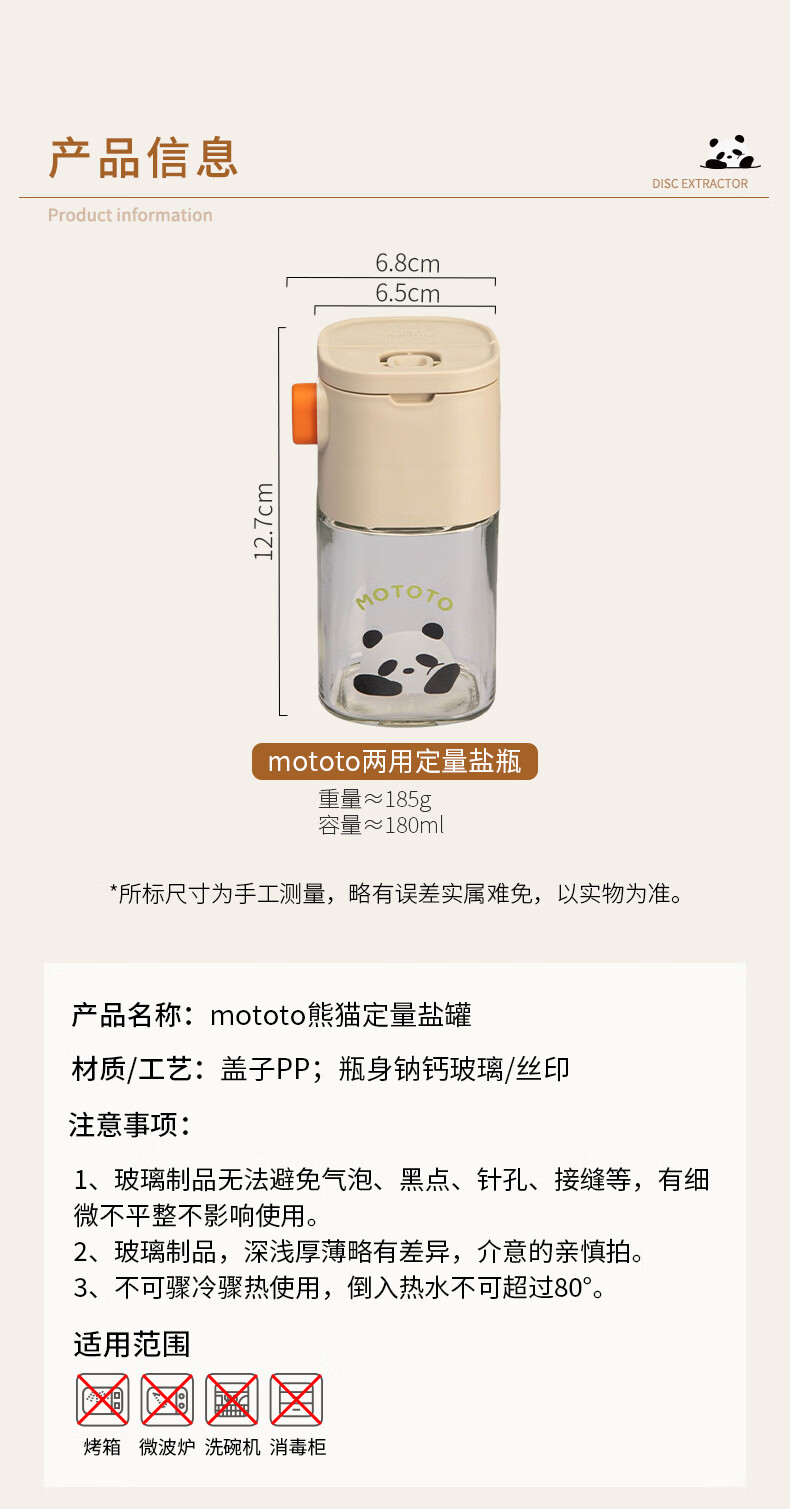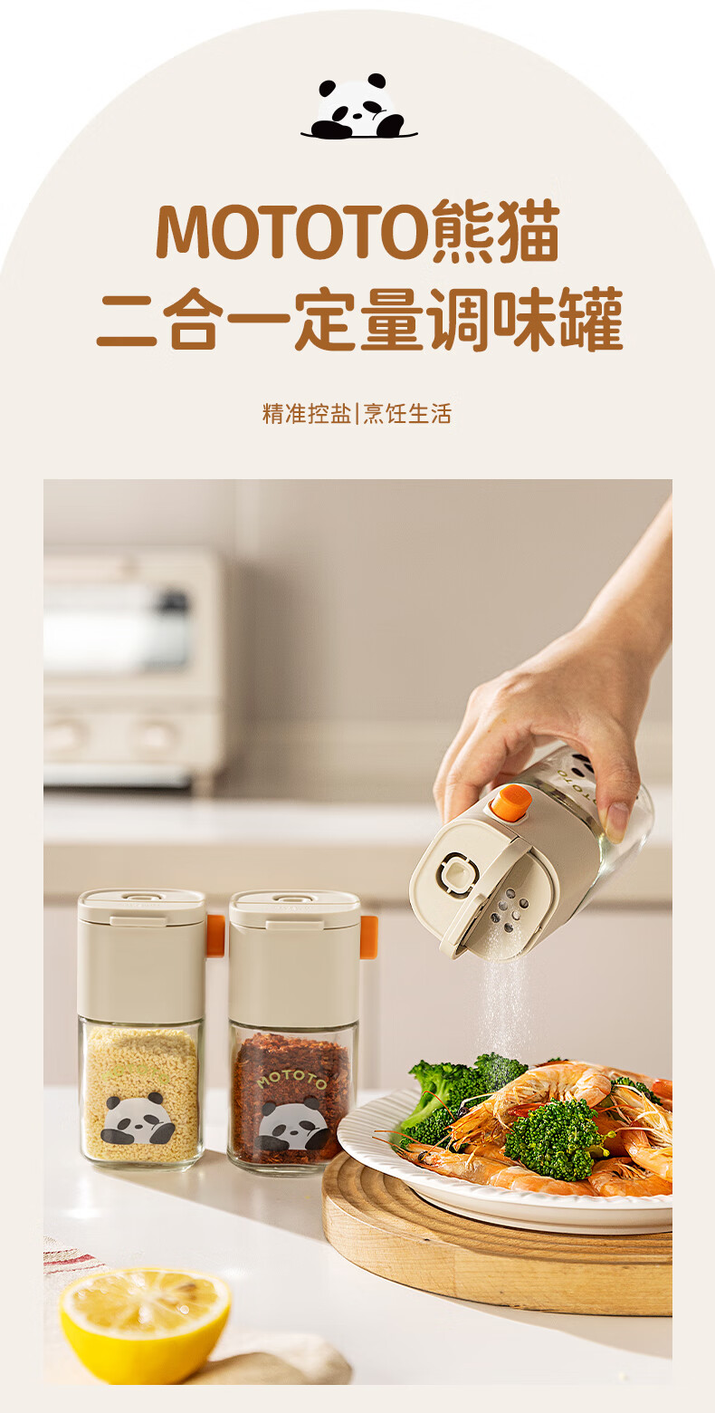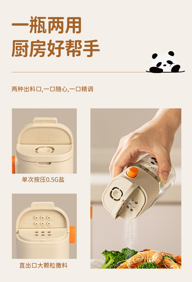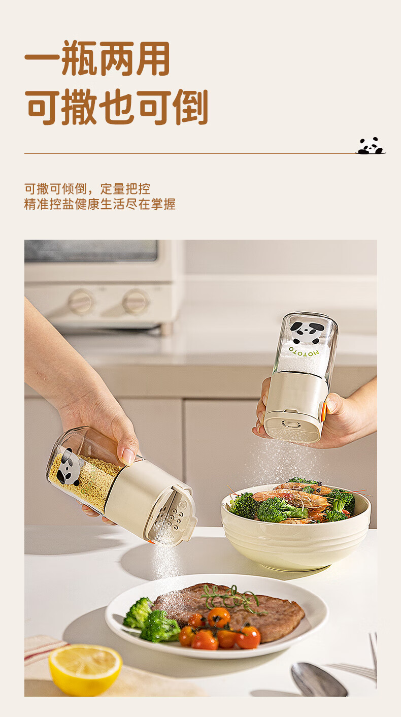 Modern housewife mototo panda quantitative salt shaker sealed moisture-proof kitchen household salt seasoning bottle seasoning jar 2 pack 180ml dual-use quantitative salt shaker