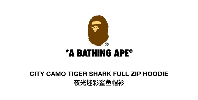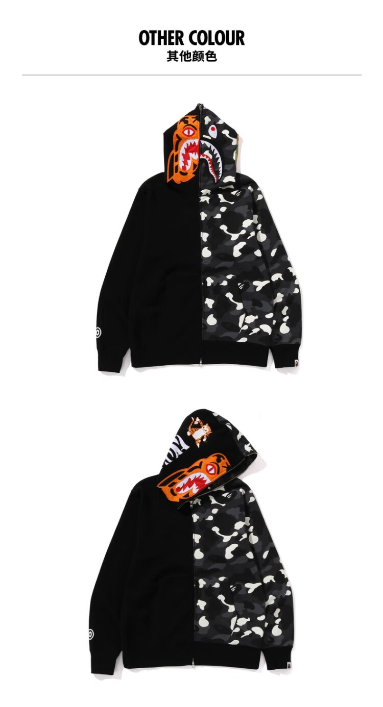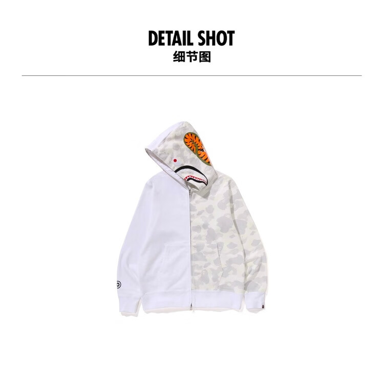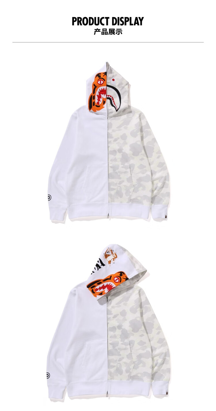 BAPE Men's 25th Autumn and Winter Luminous Camouflage Spliced Tiger Shark Hooded Sweatshirt Jacket Cardigan 009151P White WHX M One Size