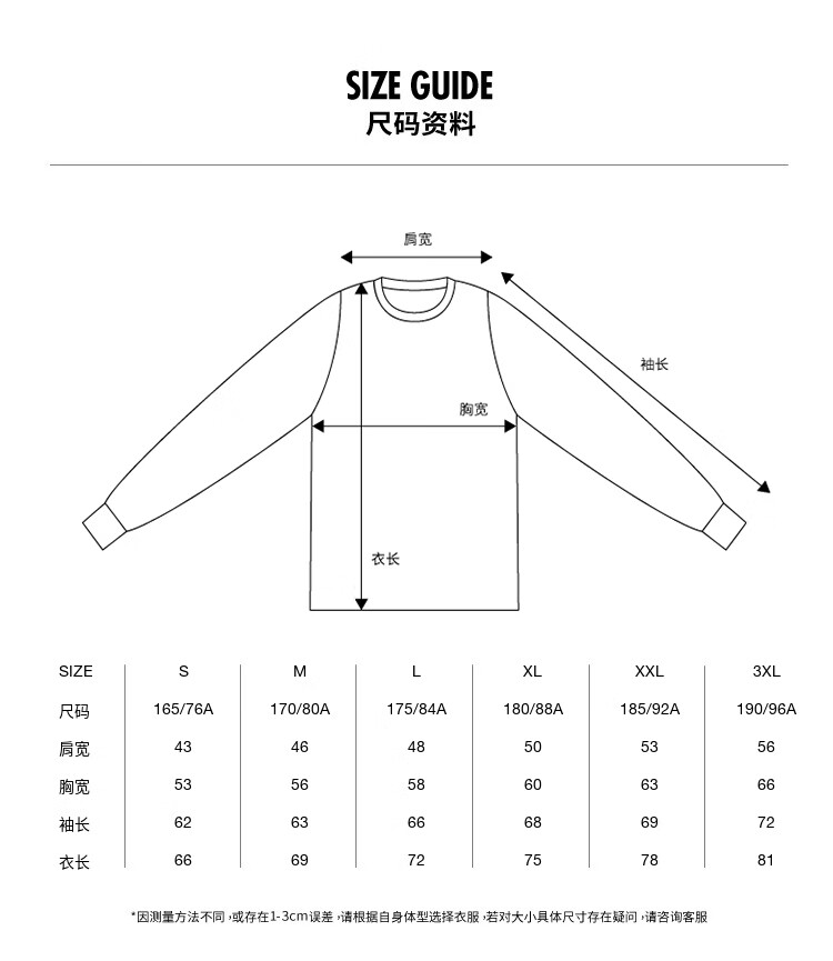 China (cm) 160-165/84-86 165-170 / 88-90 167-172 / 92-96 168-173 / 98-102 170-176 / 106-110