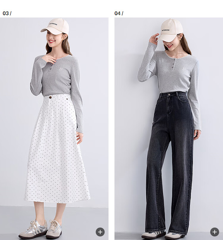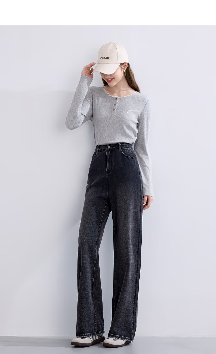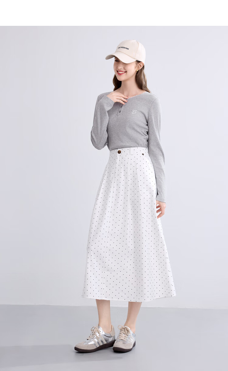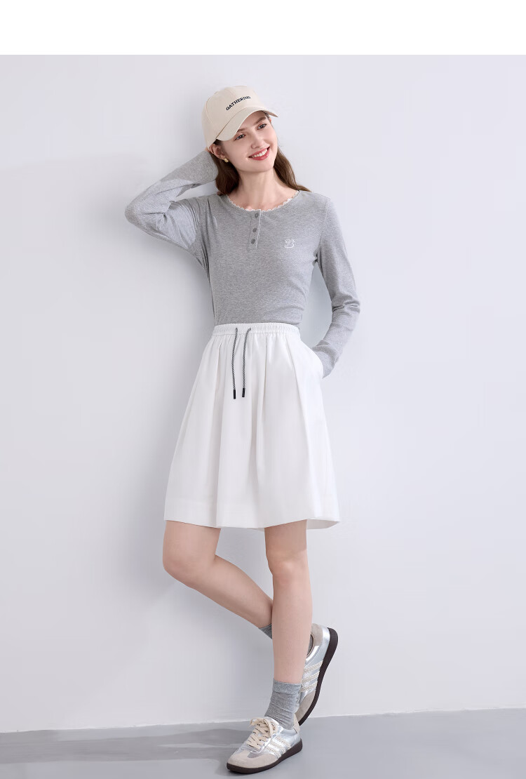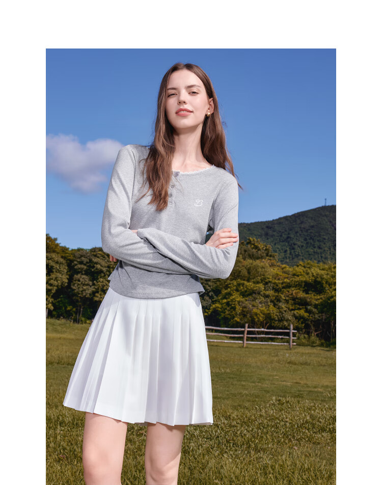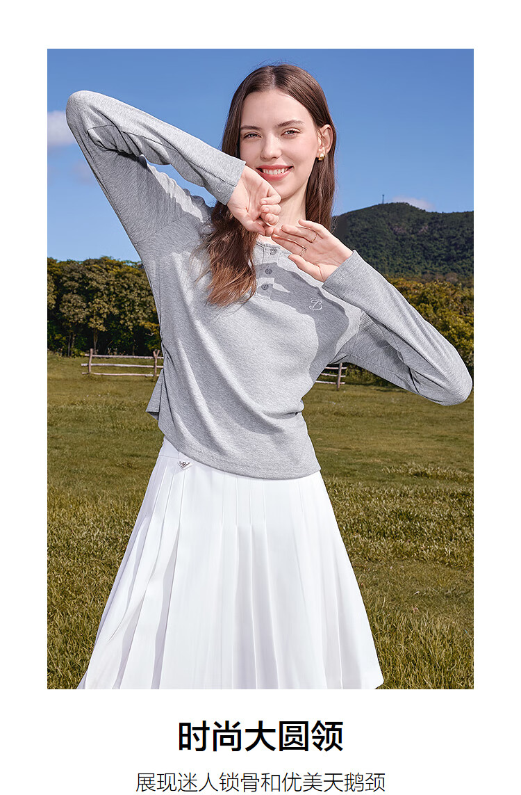 Betu Women's Clothing 2025 Autumn New T-shirt Collar Splicing Lace Pleated Waist Slim T Long Sleeve 2508T22 Light Gray L